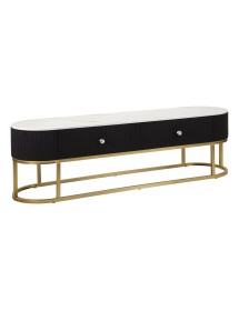 Cassapanca in legno 2 cassetti avorio con profilo ocra L.120 x P.46 H.51 (1347)