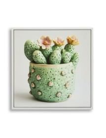 Stampa su tela laccata c/cornice vasetto cactus -c- cm 40x2,8x40