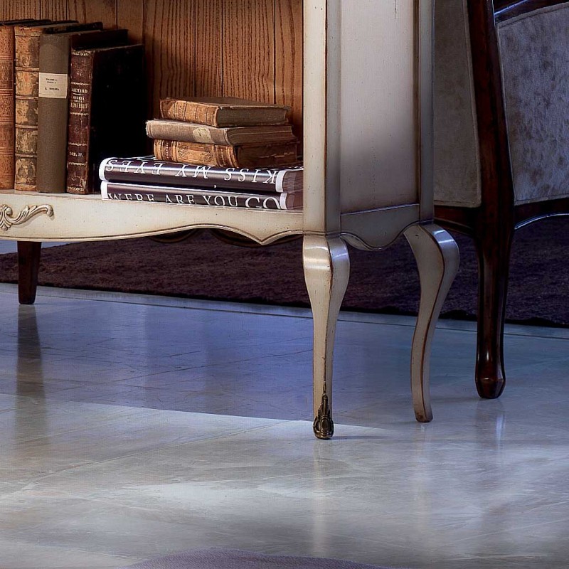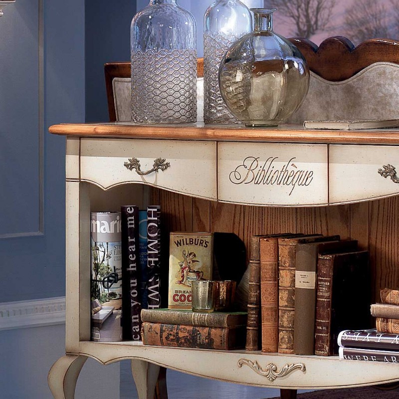 Finitura struttura e piano : bianco consumato con terre beige che danno il senso del mobile vintage