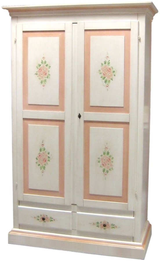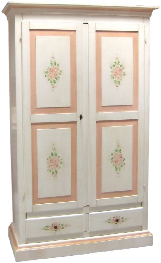 Armadio 2 porte 2 cassetti shabby bianco anticato filo rosa 125X60X200