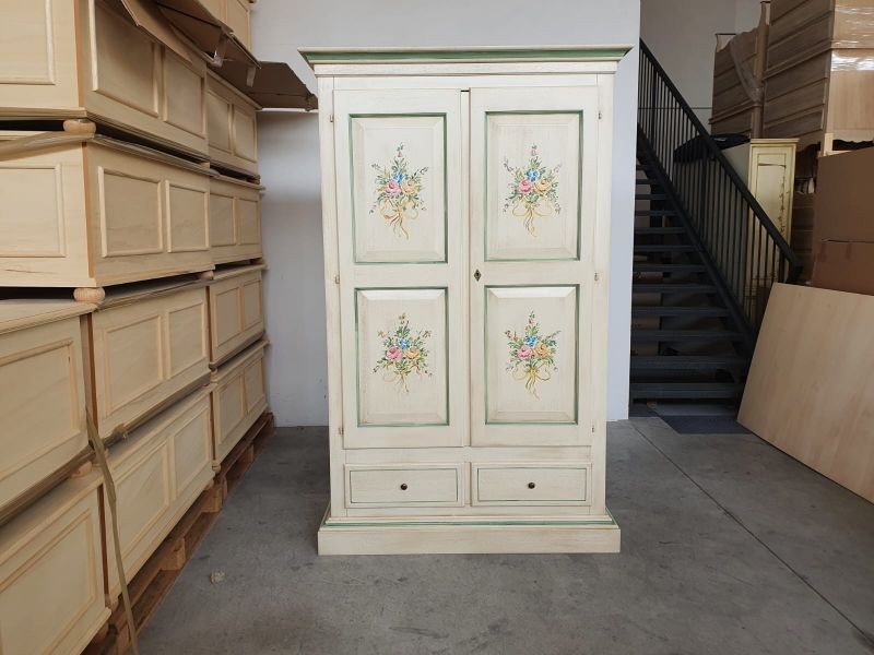 Armadio dallo stile provenzale che saprà impreziosire con le decorazione con gusto la stanza in cui andrà posizionato. Composto da da due porte due cassetti e un palo appendiabiti per il contenimento di biancheria, capi di abbigliamento, sciarpe ,guanti. Pratico e confortevole per creare una combinazione unica donando un tocco di shabby chic alla stanza.