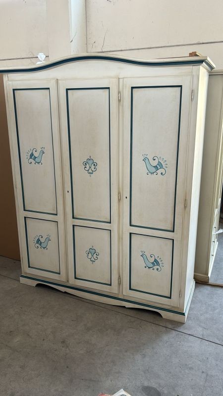 Armadio 3 porte bianco anticato filo blu pavoncella 158X56X197