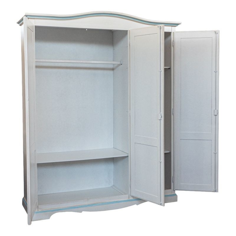 Armadio 3 porte legno bianco anticato filo azzurro decorato 158X56X197