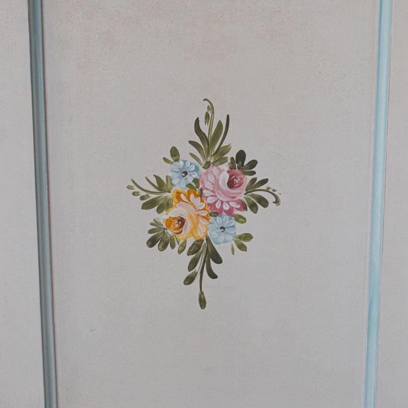 - Colore: Laccato Bianco anticato con filo azzurro e decori floreali