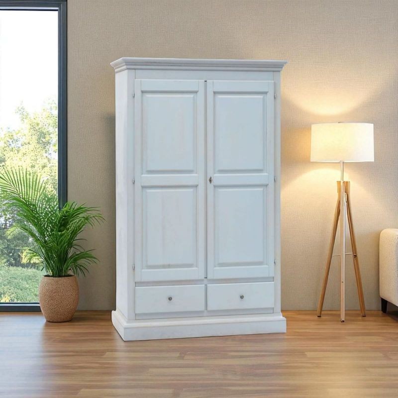 Armadio dallo stile shabby che saprà impreziosire con la sua originalità la stanza in cui andrà posizionato. Composto da da due porte due cassetti e un palo appendiabiti per il contenimento di biancheria, capi di abbigliamento, sciarpe ,guanti. Pratico e confortevole per creare una combinazione unica donando un tocco di shabby chic alla stanza.