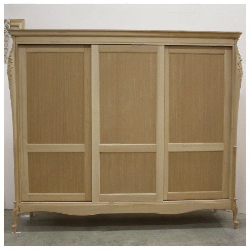 ARMADIO 3 ANTE SCORREVOLI CLASSICO IN LEGNO CON INTAGLIO BIANCO L.260 P.69 H.225