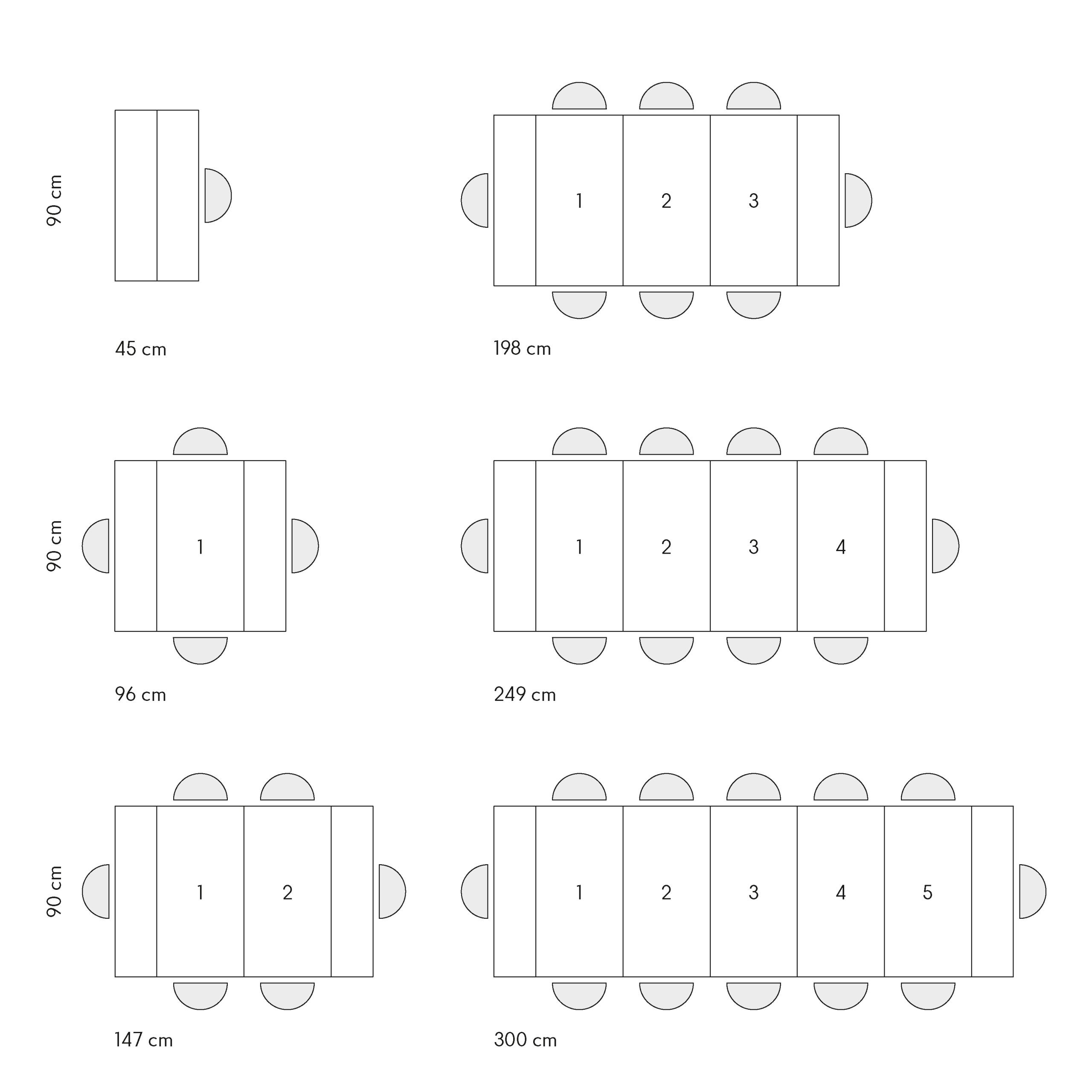 Dimensioni da aperto: 300x90x76 cm ( con cinque allunghe )