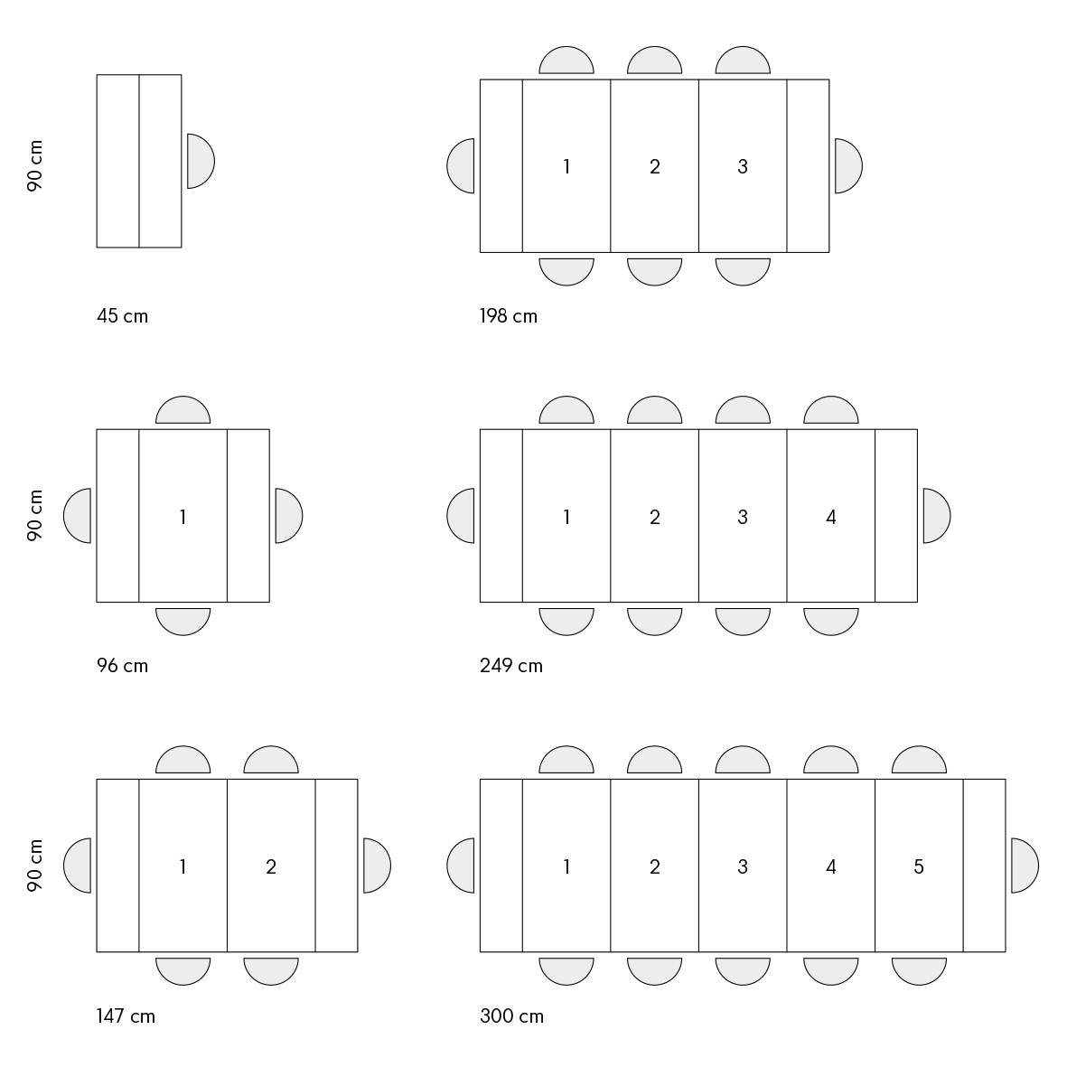 Dimensioni da aperto: 300x90x76 cm ( con cinque allunghe )