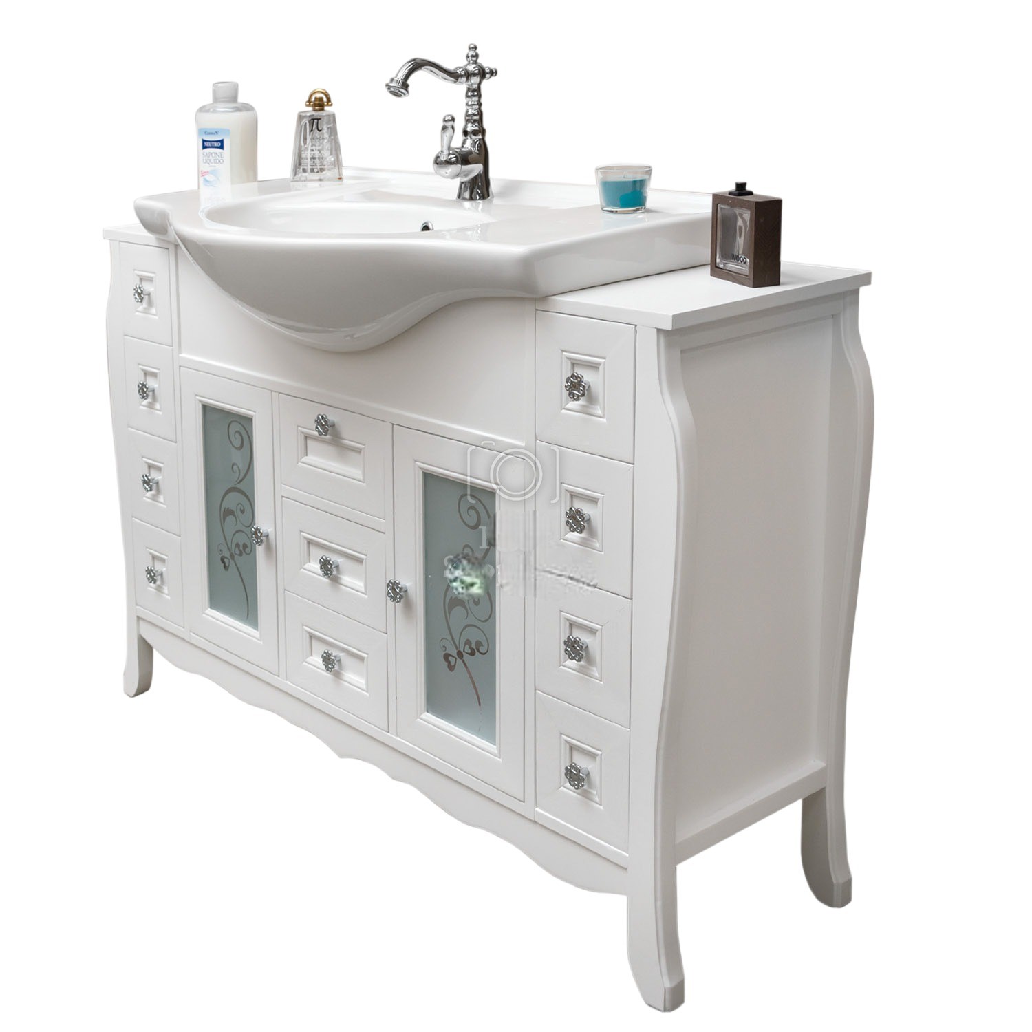 Mobile bagno completo classico legno bianco shabby L.123 P.50