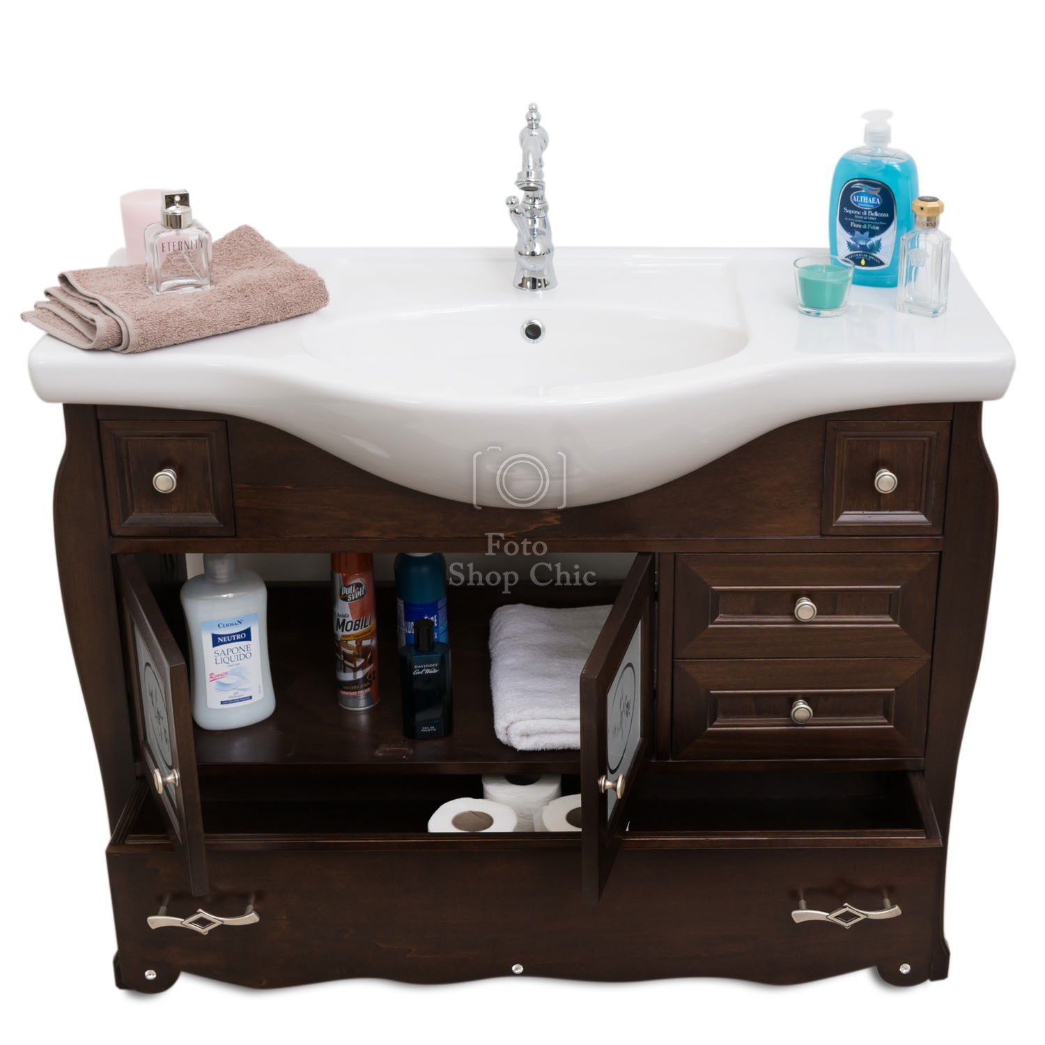 Mobile bagno classico sagomato legno tinta noce oro L.110 P.602.483,00 € 3.820,00 € -35% -