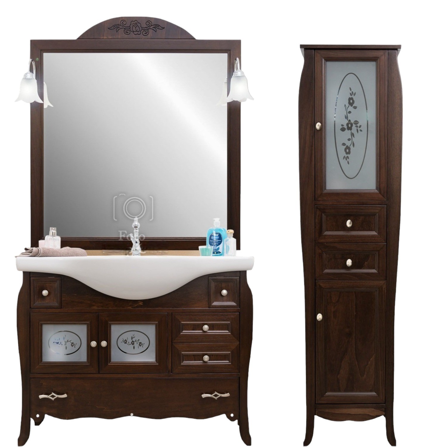 Mobile bagno completo classico colonna legno brillanti tinta noce