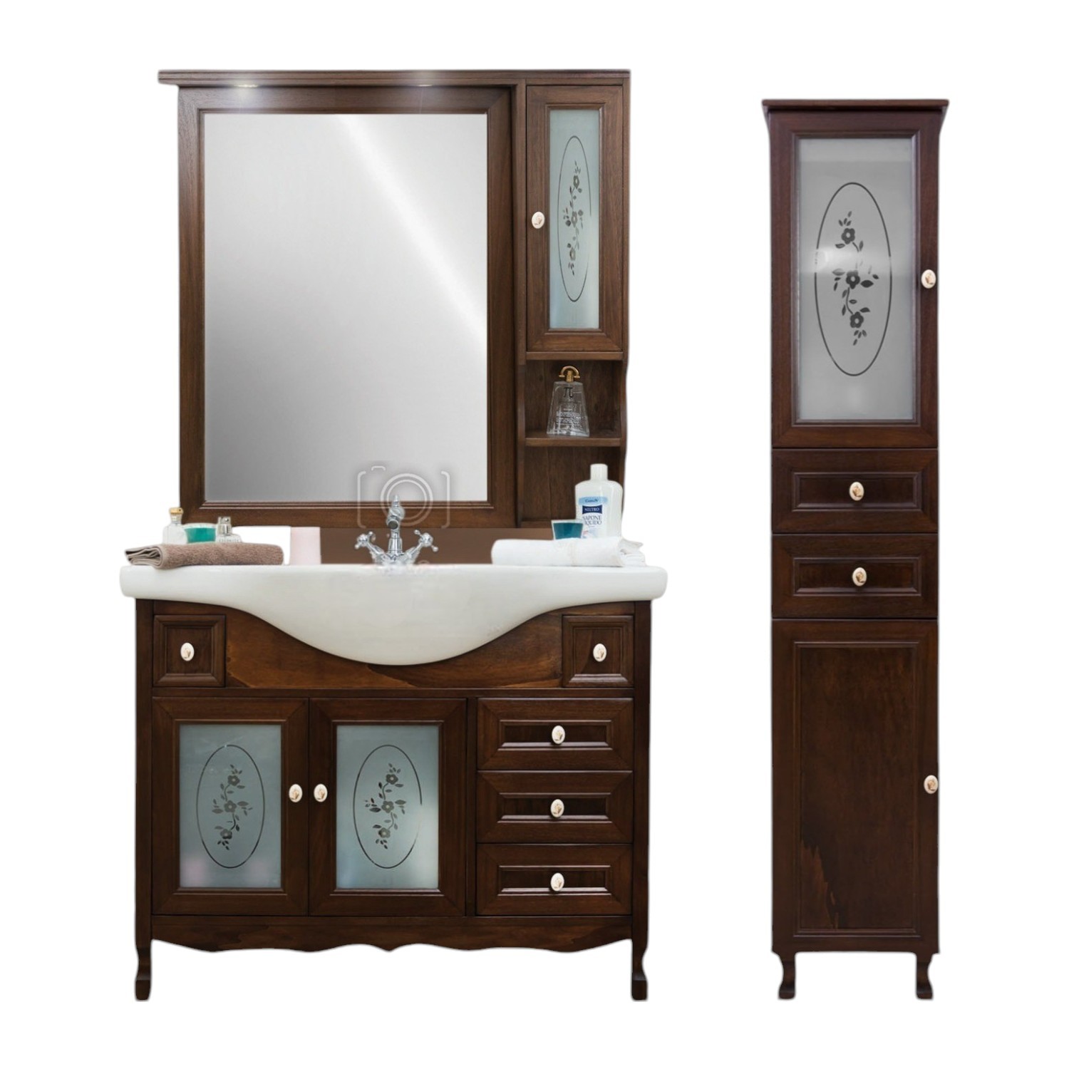 Mobile bagno Classico Sagomato con Colonna Legno Tinta Noce L.105 P.50