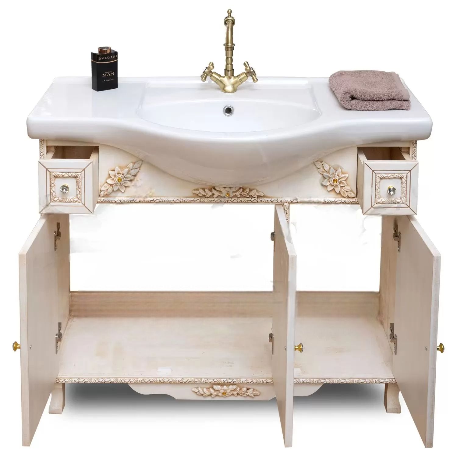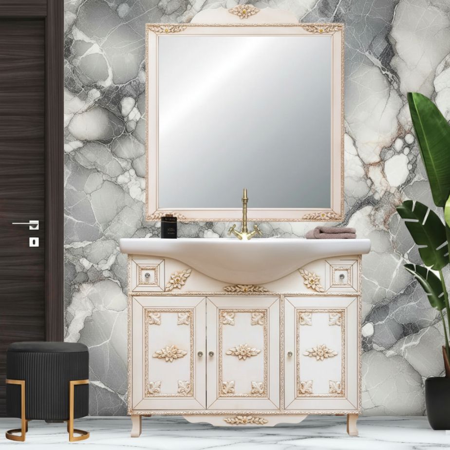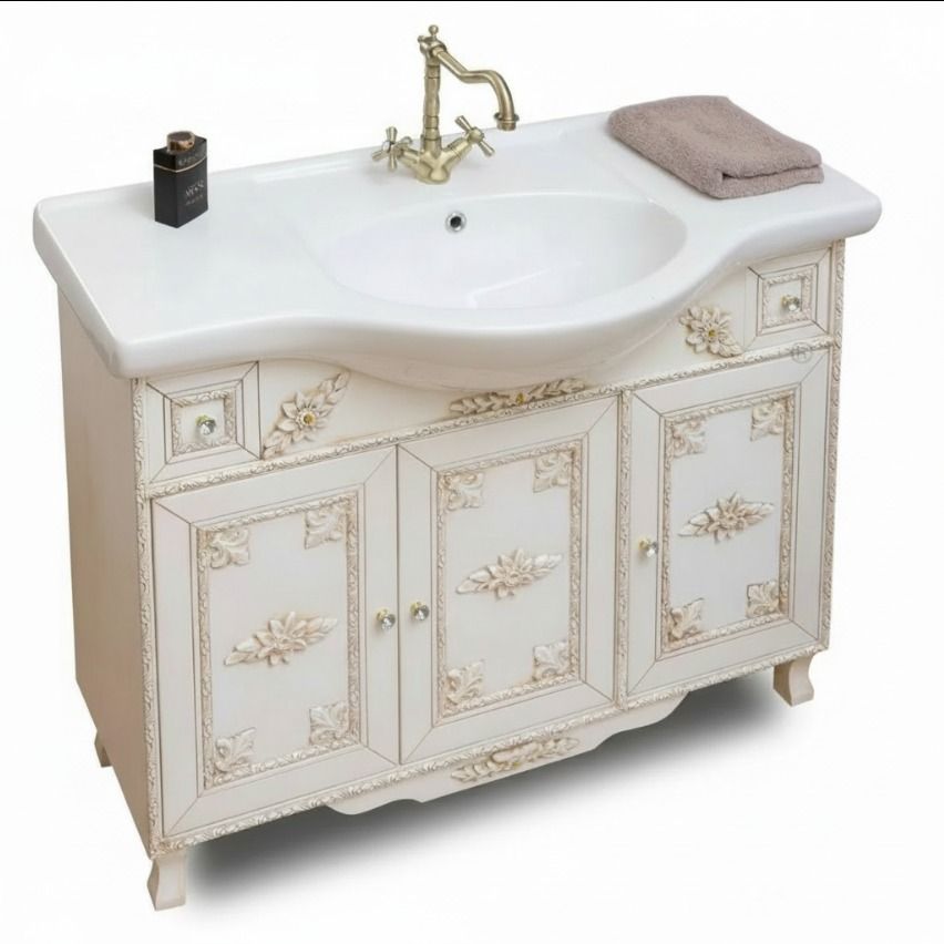 MOBILE BAGNO LEGNO BAROCCO AVORIO DECAPE' L.105 P.35