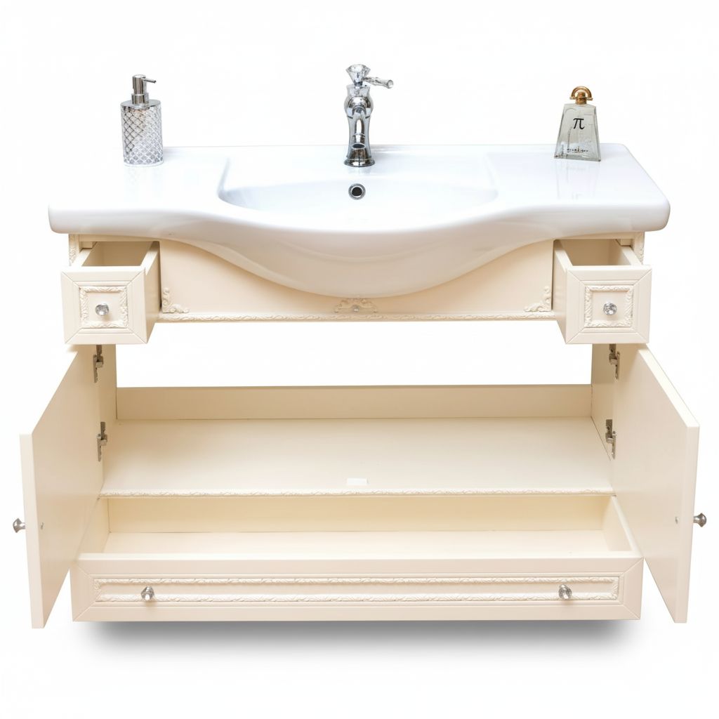 MOBILE BAGNO LEGNO BAROCCO AVORIO CON INTARSI L.105 P.35
