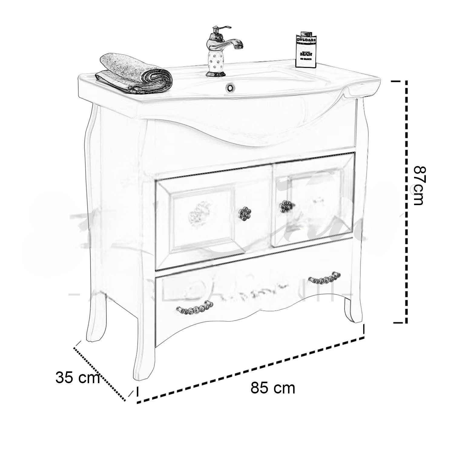 Mobile bagno classico legno grigio shabby chic L.85 P.50