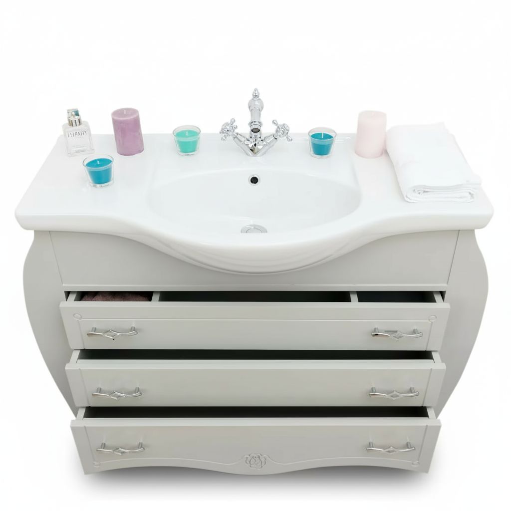 Mobile bagno classico sagomato legno grigio shabby chic L.105 P.50