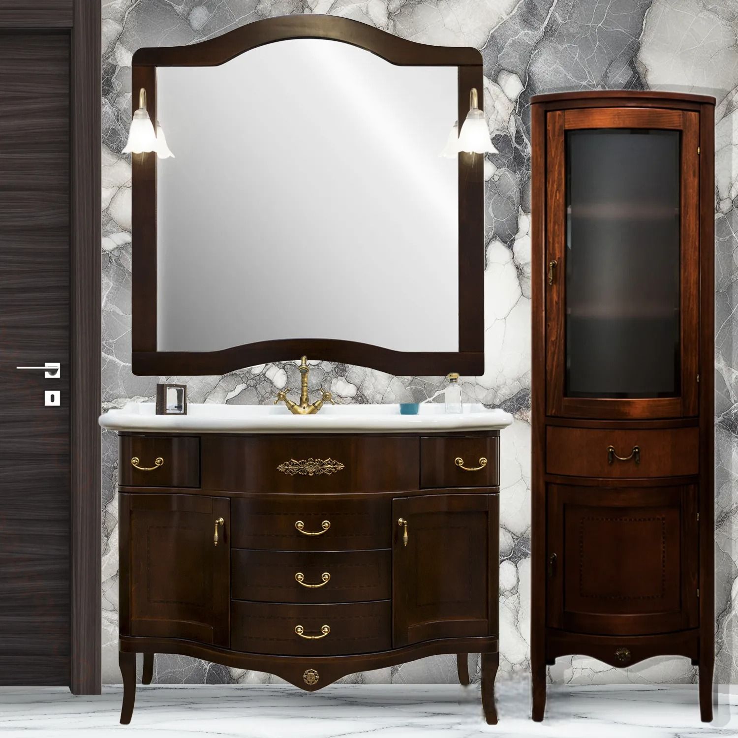 Mobile bagno classico con colonna legno tinta noce L.110 P.60