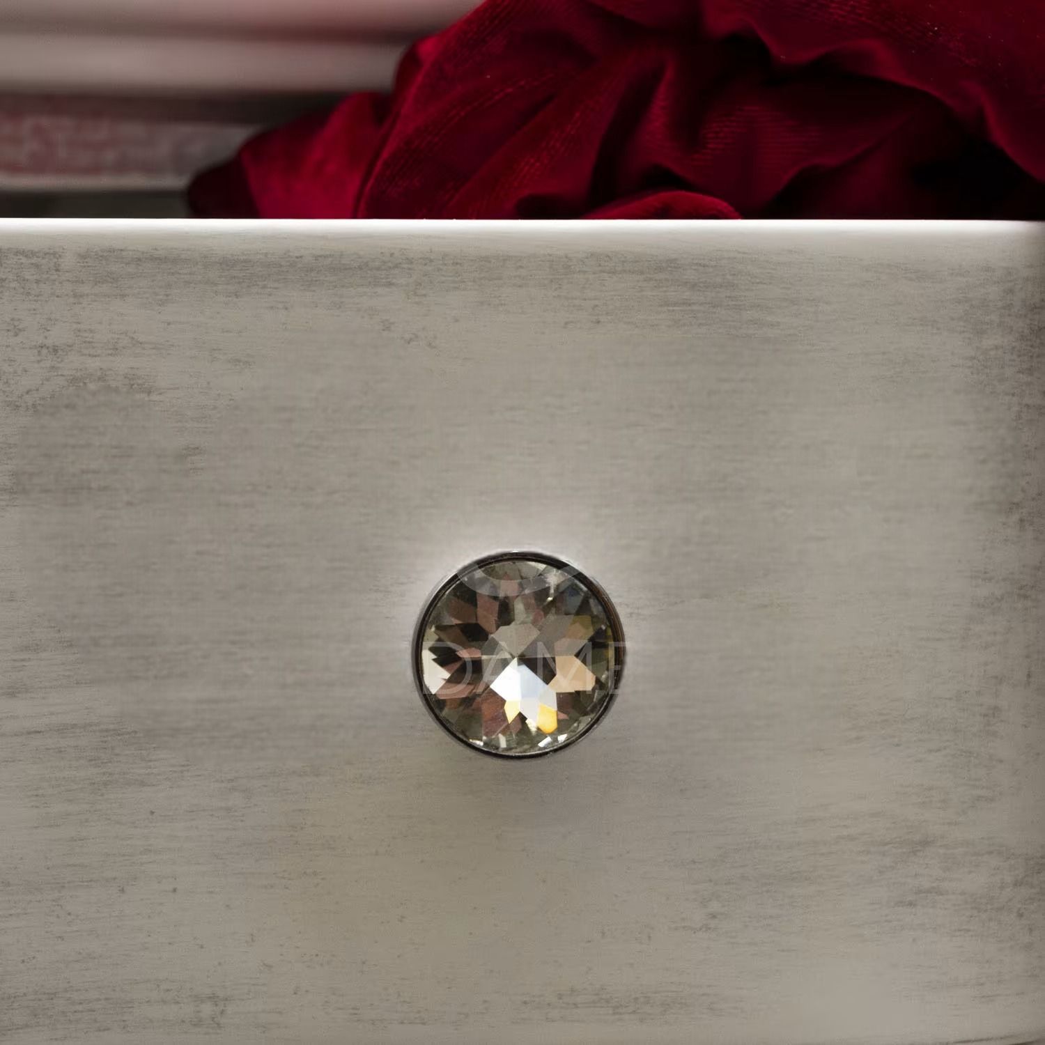 Mobile bagno in stile shabby chic, costruito interamente in legno di pioppo realizzato completamente a mano in Italia. Dotato di 3 ante e 2 cassetti laterali. Unico nel suo genere per i suoi pomoli in argento con svarowski per non passare inosservati. Lavabo in ceramica è resistente ad prodotti chimici e corrosivi. Con la base è compresa una specchiera in stile shabby chic. La vernice del mobile è idrorepellente.