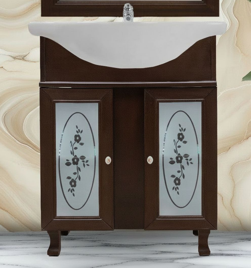 MOBILE BAGNO LEGNO ARTE POVERA TINTA NOCE L.65 P.50