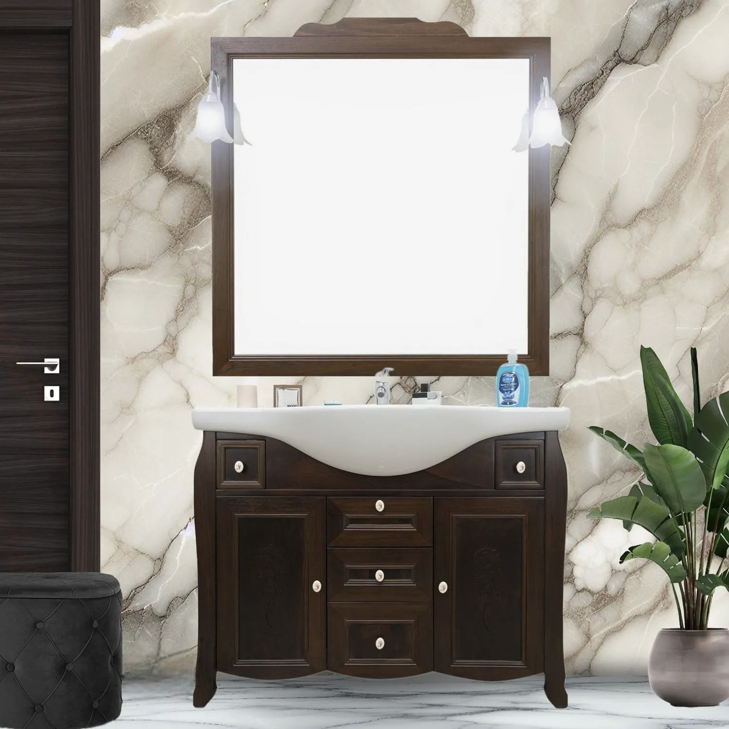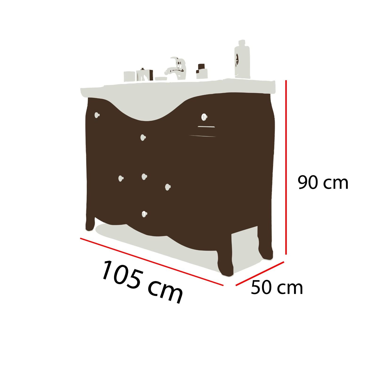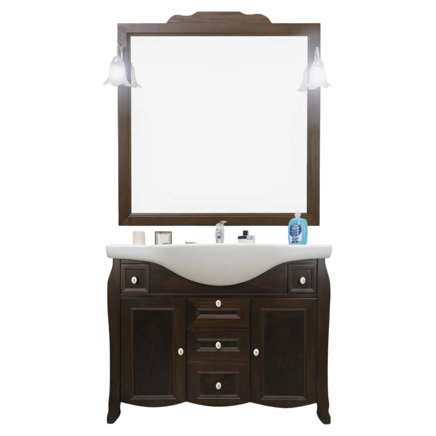 MOBILE BAGNO CLASSICO LEGNO SAGOMATO NOCE L.105 P.50