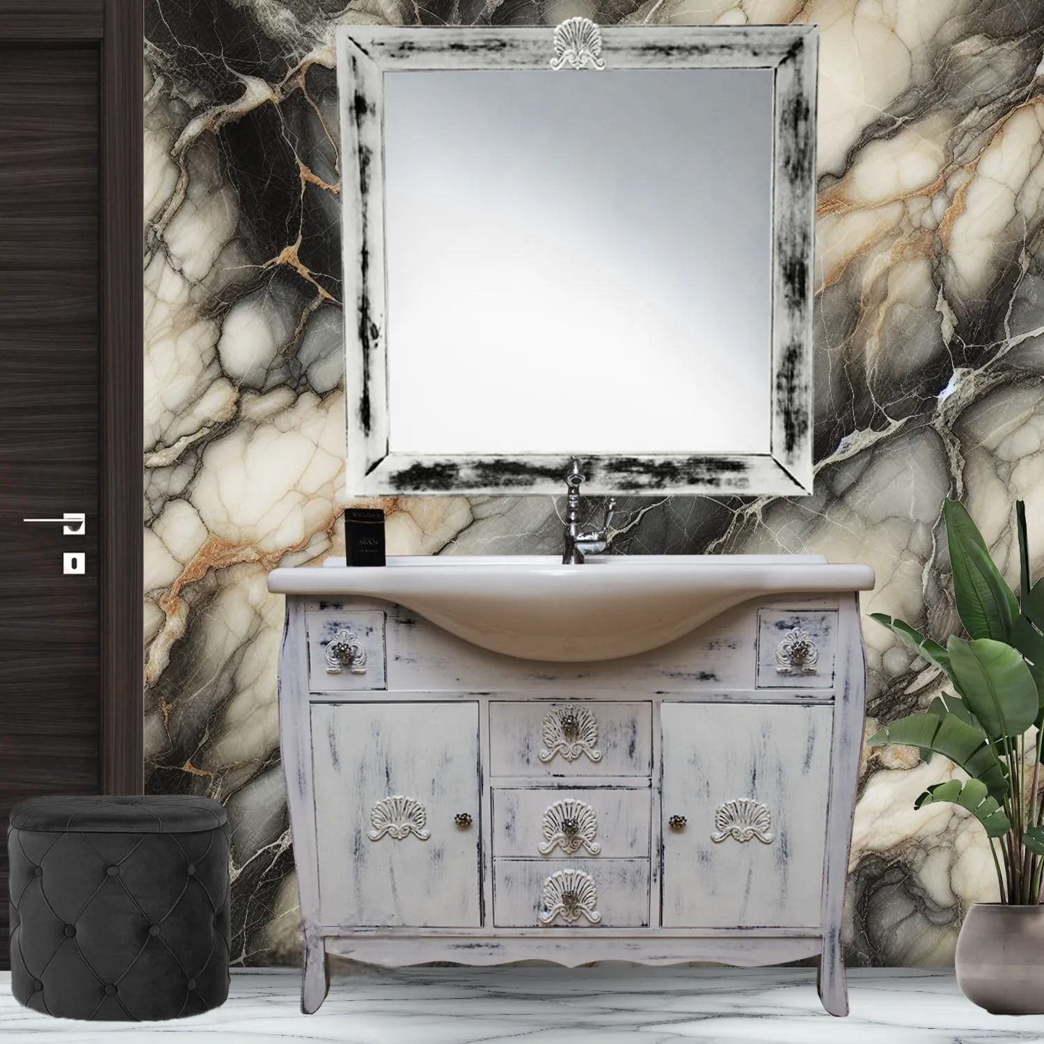 MOBILE BAGNO COMPLETO IN LEGNO MARMO BIANCO SHABBY L.160 P.601.590,40 € 2.272,00 € -30% -