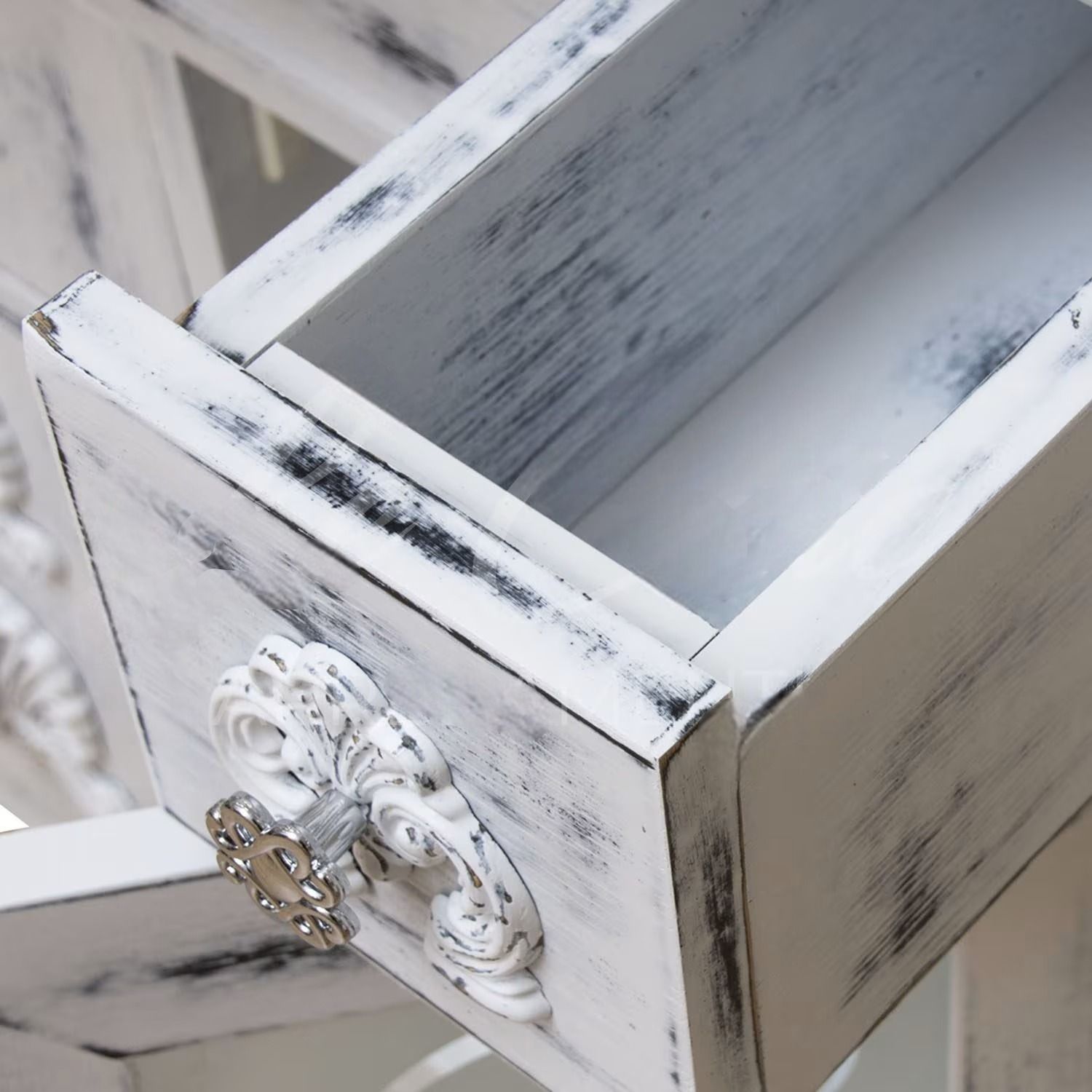 Finitura: laccato bianco anticato