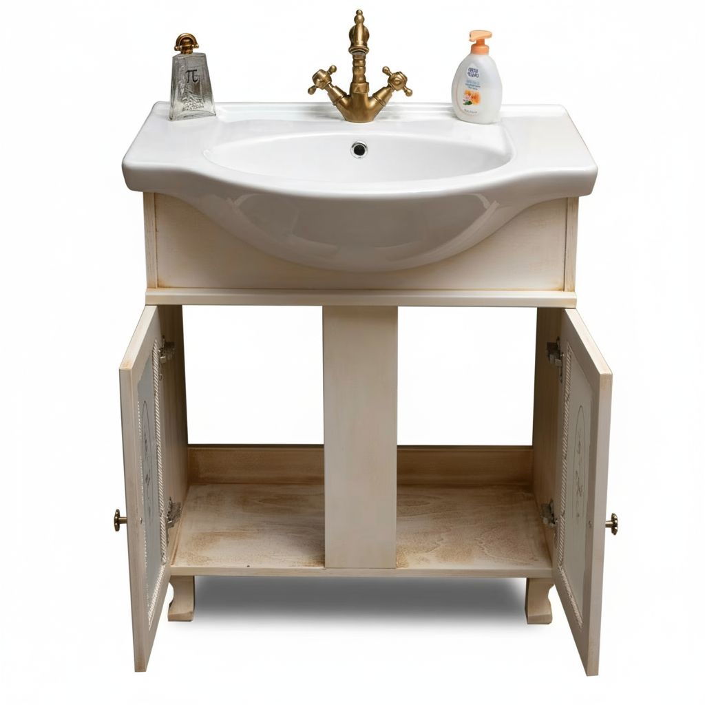 MOBILE BAGNO LEGNO ARTE POVERA AVORIO ANTICATO L.75 P.50
