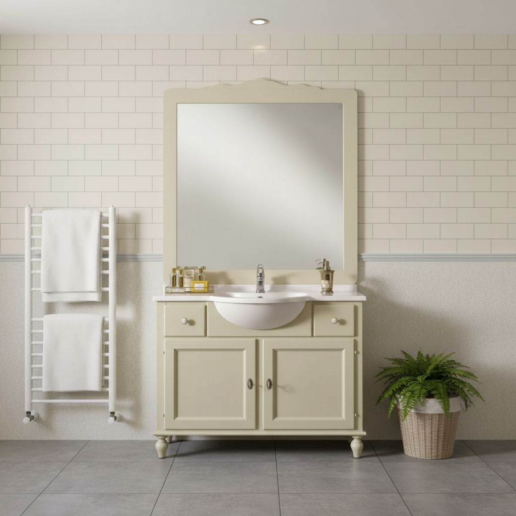 Mobile bagno 2 porte 2 cassetti legno shabby avorio 105x36x79