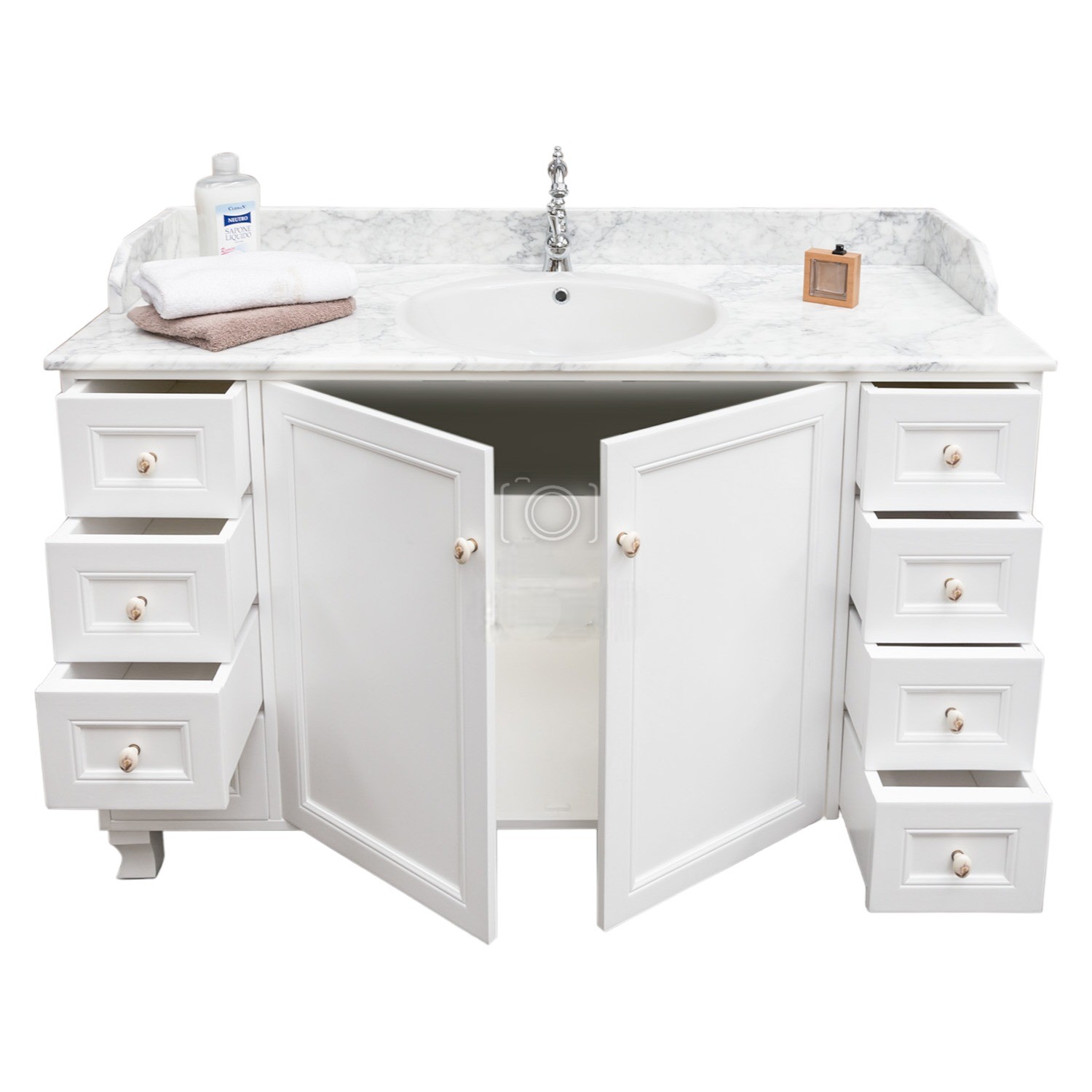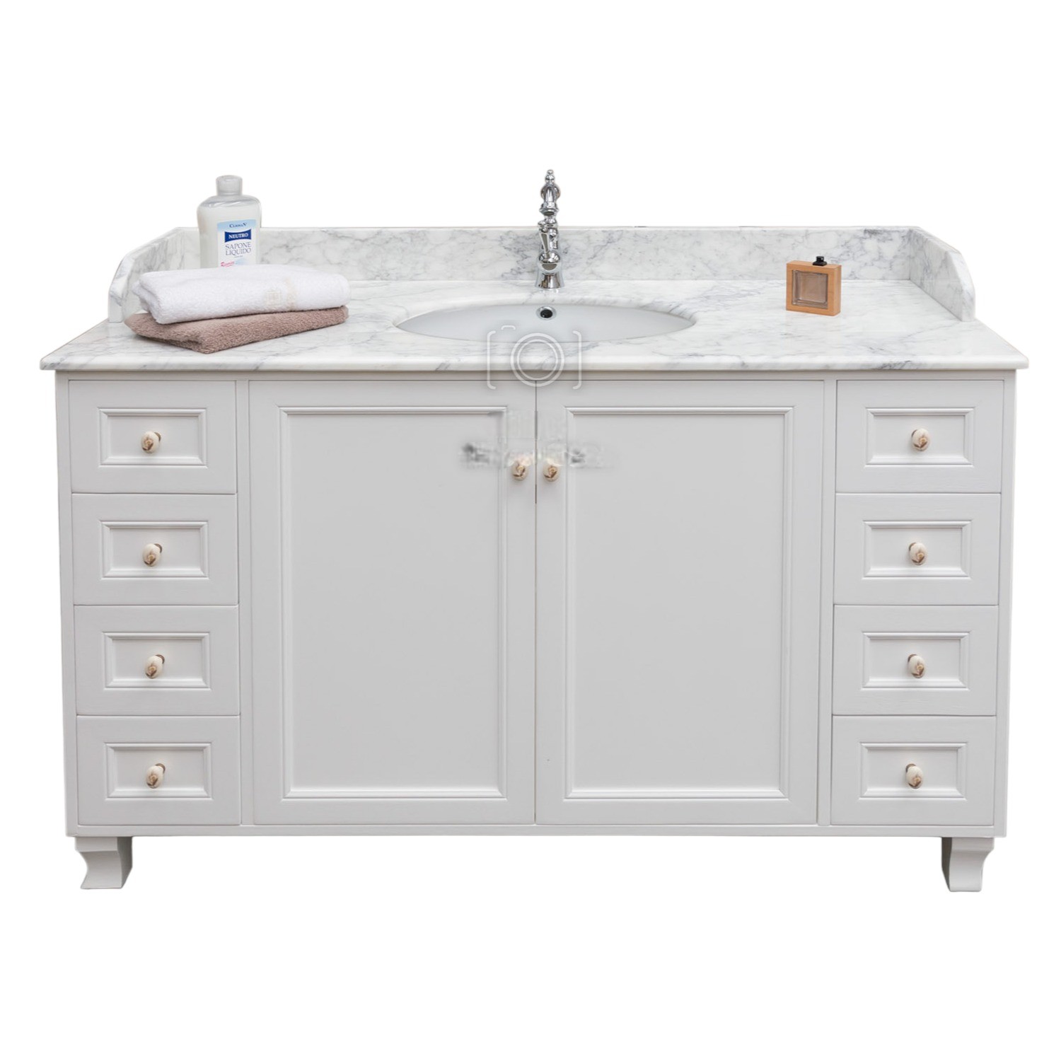 MOBILE BAGNO COMPLETO IN LEGNO MARMO BIANCO SHABBY L.160 P.60