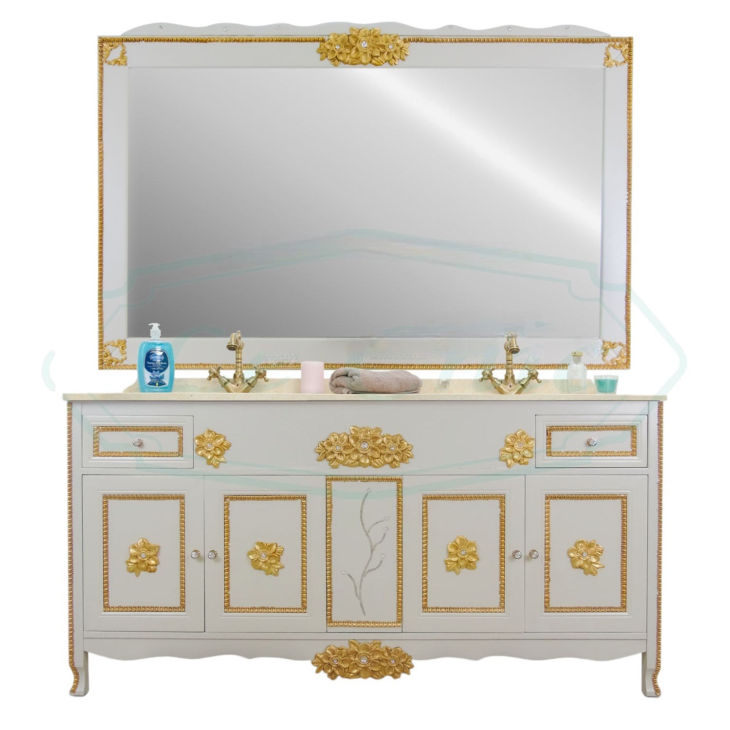 MOBILE BAGNO DOPPIA VASCA LEGNO BAROCCO SHABBY ORO L.180 P.61