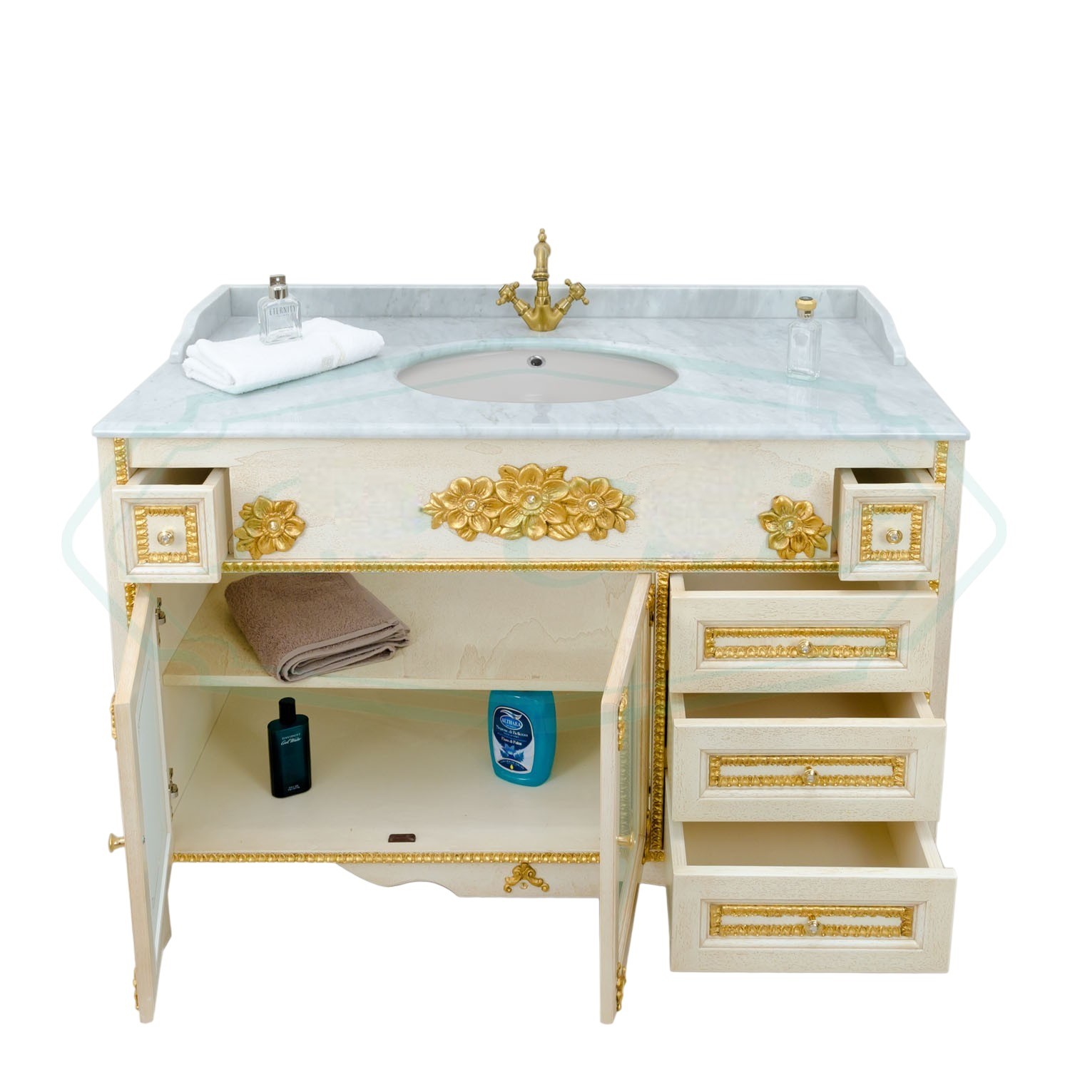 MOBILE BAGNO LEGNO BAROCCO DECAPE' AVORIO ORO L.160 P.60