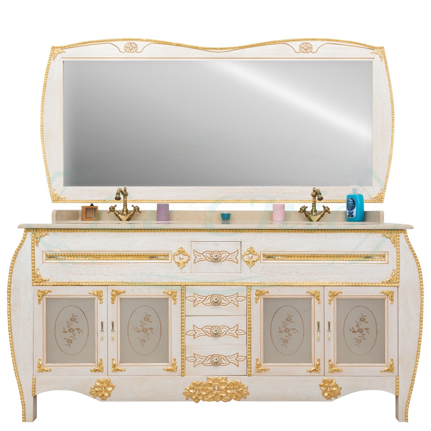 MOBILE BAGNO DOPPIA VASCA BAROCCO DECAPE' AVORIO ORO L.180 P.60