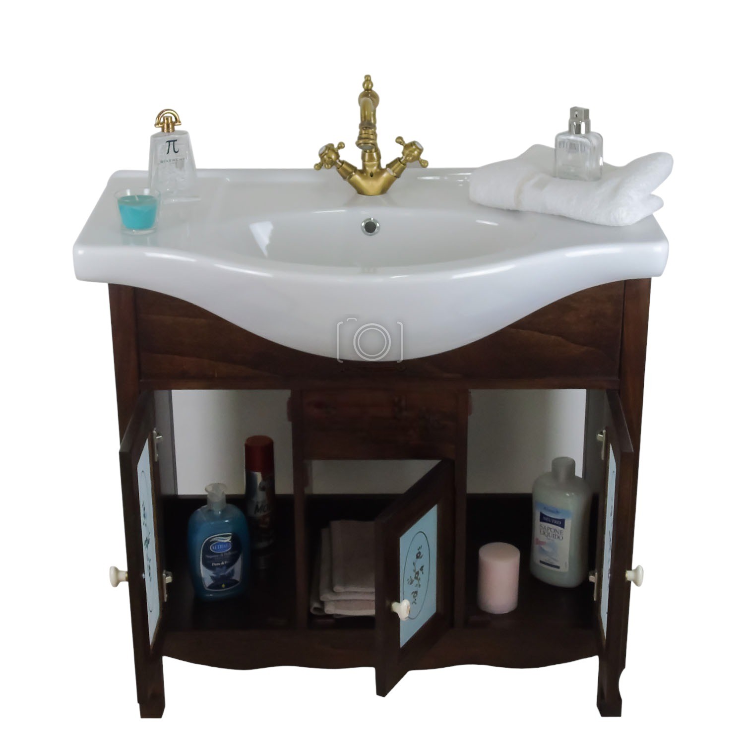 MOBILE BAGNO LEGNO ARTE POVERA TINTA NOCE L.85 P.50