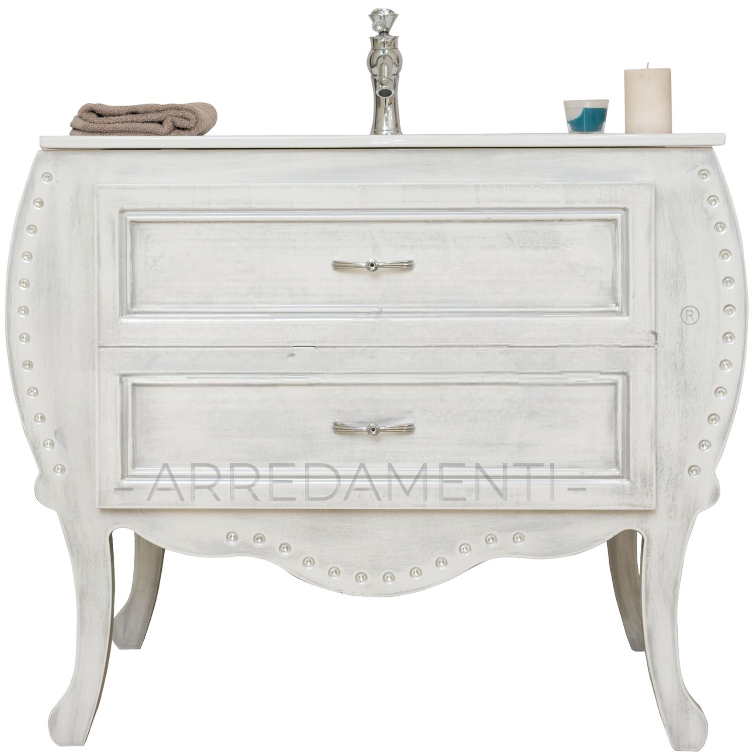 MOBILE BAGNO LEGNO SHABBY CHIC BIANCO L.100 P.46