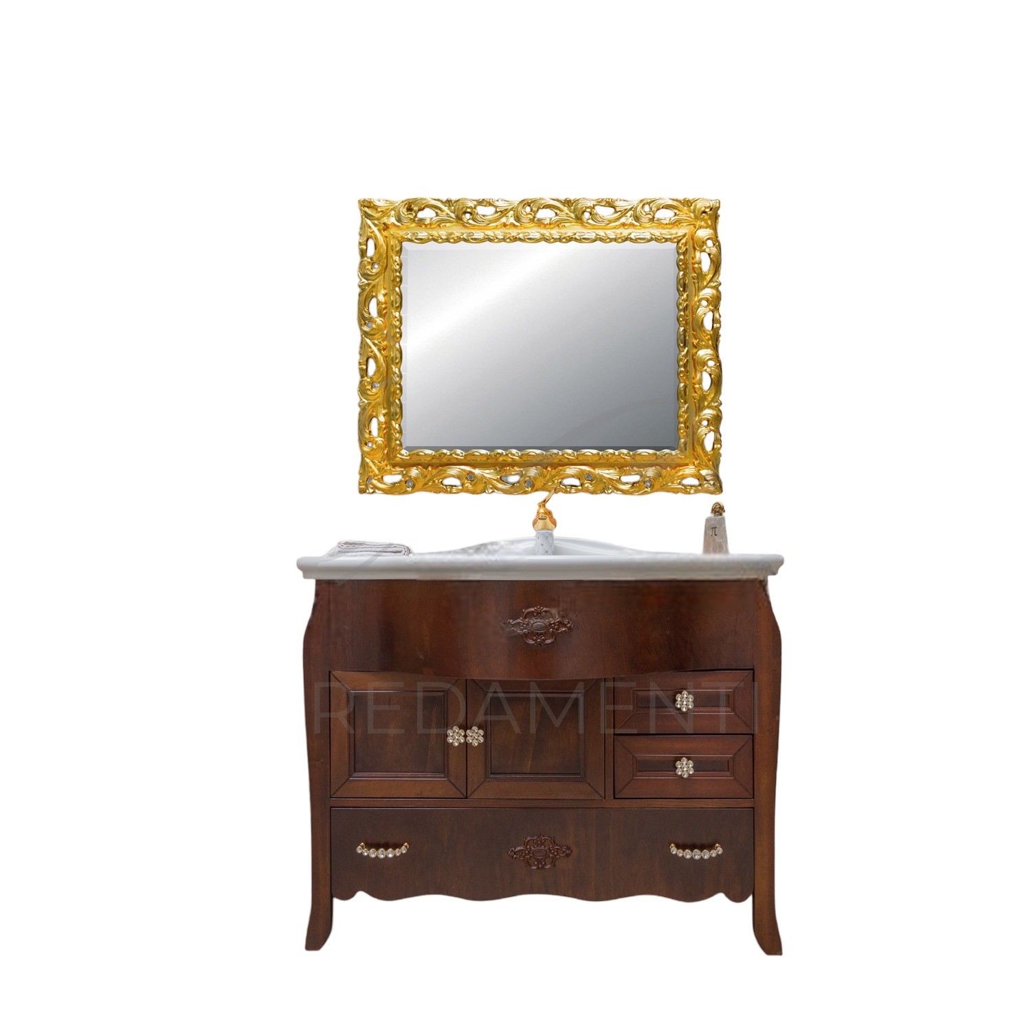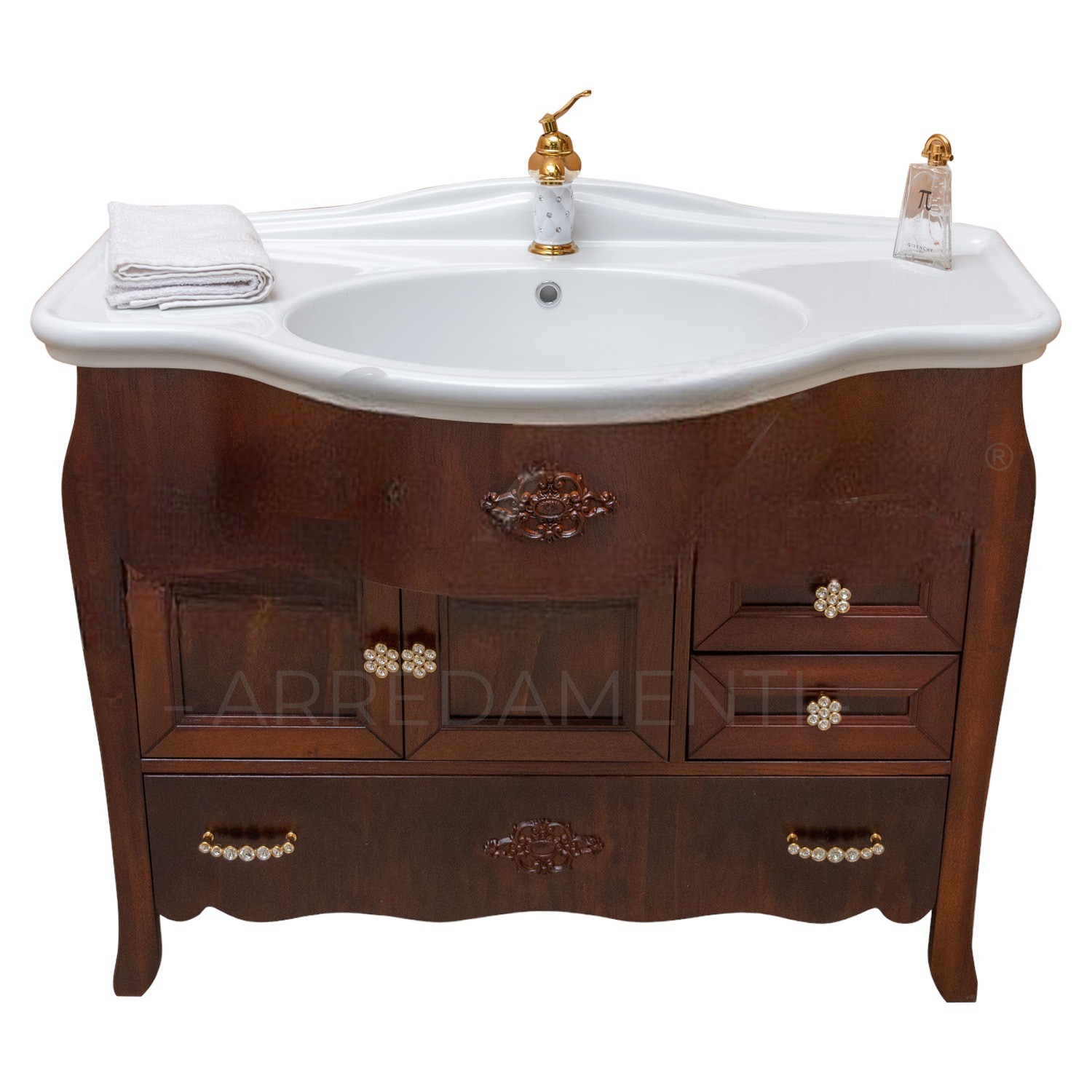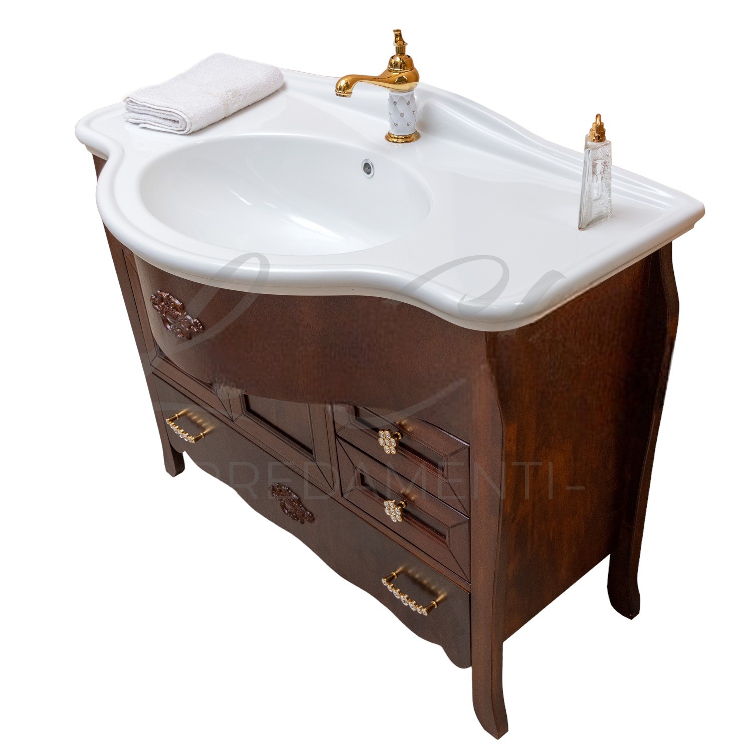 MOBILE BAGNO LEGNO BAROCCO TINTA NOCE L.110 P.60