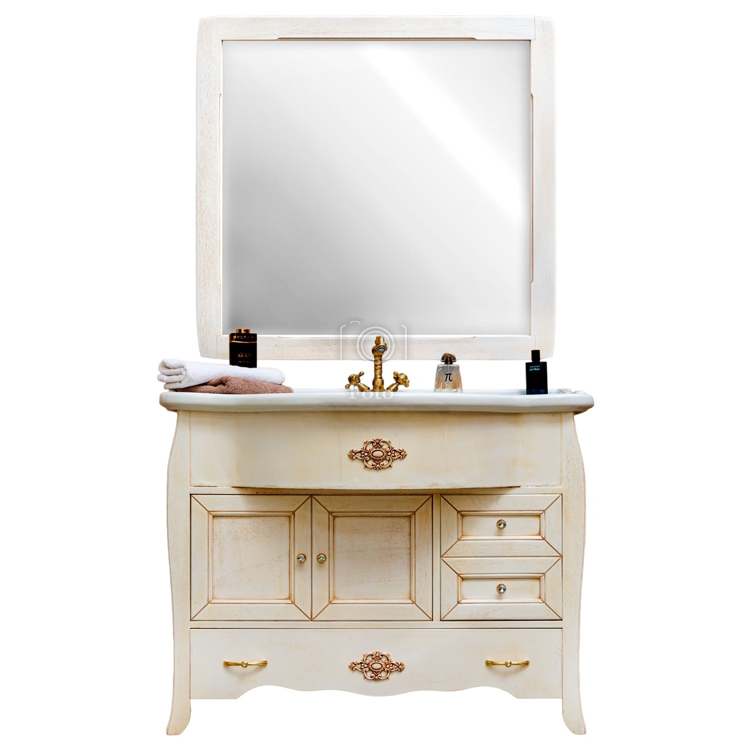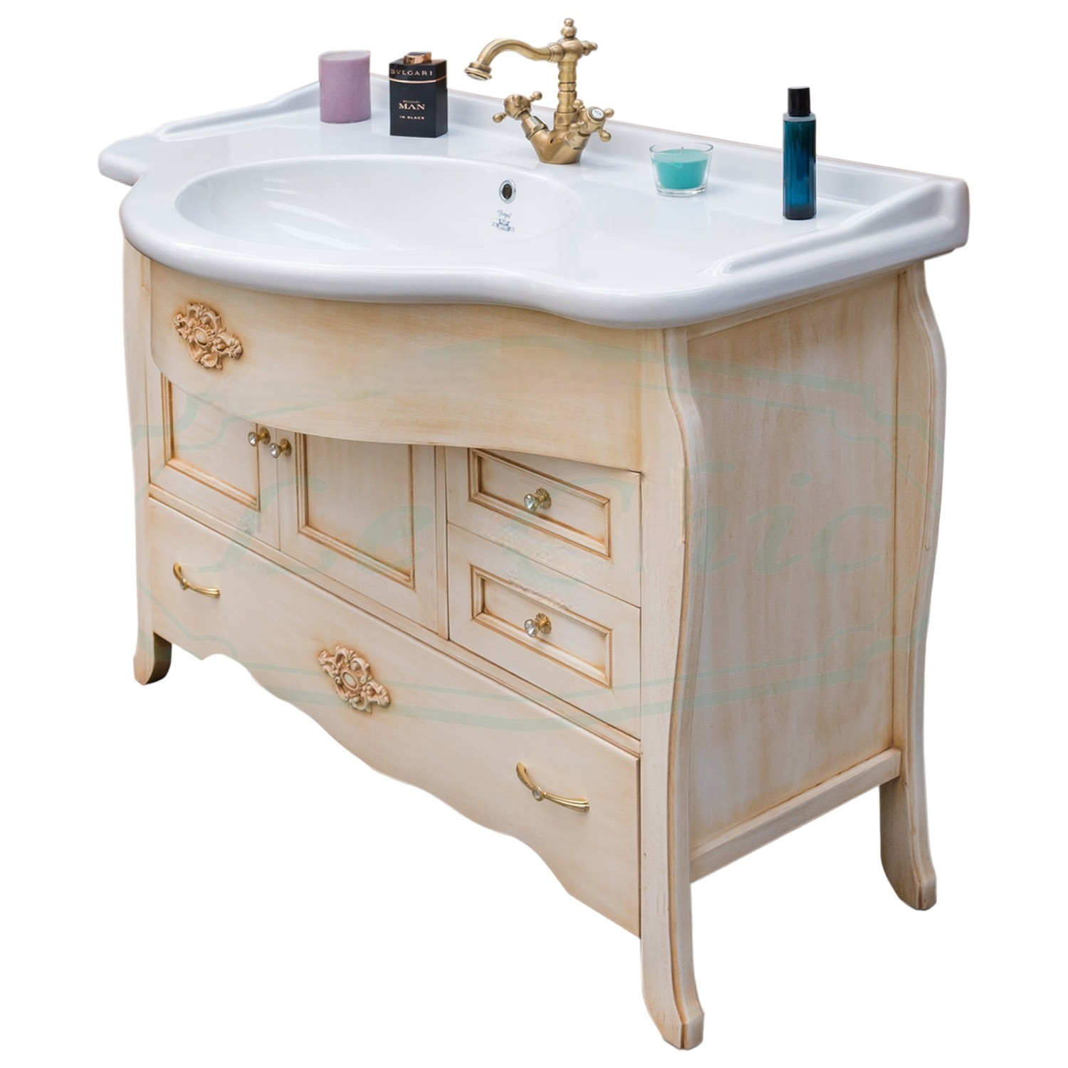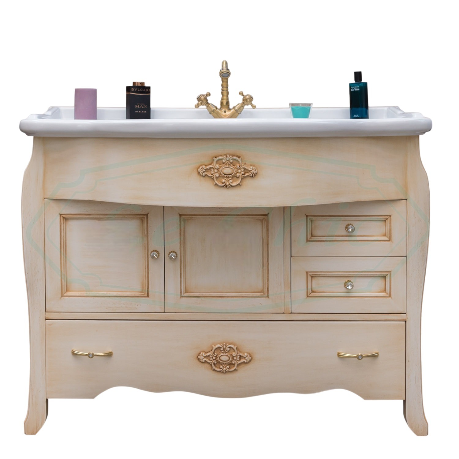 MOBILE BAGNO LEGNO BAROCCO AVORIO VINTAGE L.110 P.60