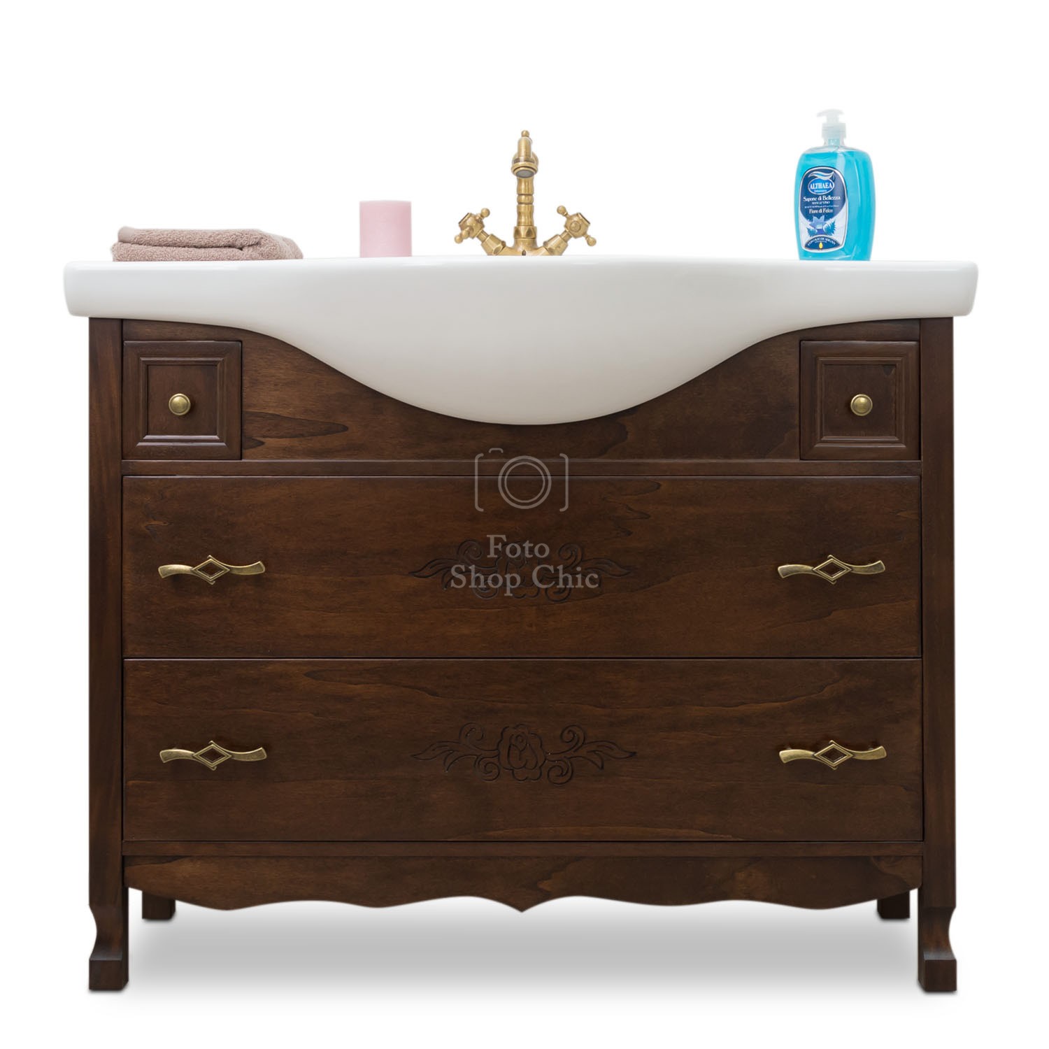 MOBILE BAGNO LEGNO ARTE POVERA TINTA NOCE L.105 P.50