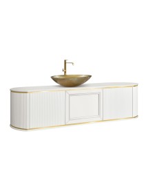 Mobile bagno sospeso contemporaneo 2 ante 1 cassetto cannettato legno bianco oro e cromo 157x50x43 (124)1.341,00 € 2.980,00 € -55% -