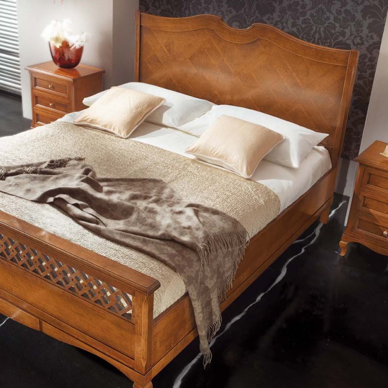 1 Letto matrimoniale intarsiato con pedata traforata