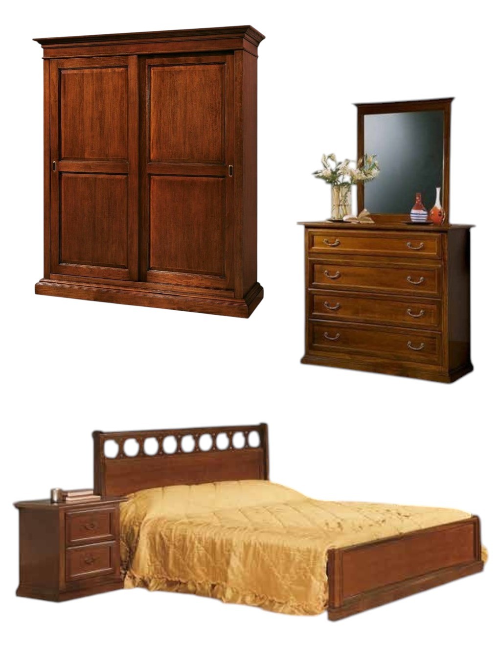 - Il comò e i comodini sono già montati, mentre il letto e l'armadio sono da montare