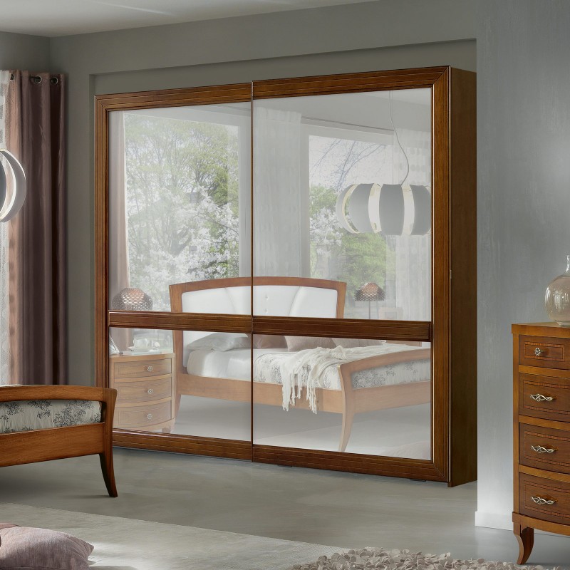 N.1 Armadio classico 2 porte scorrevoli con specchi centrali a specchio o porte con legno