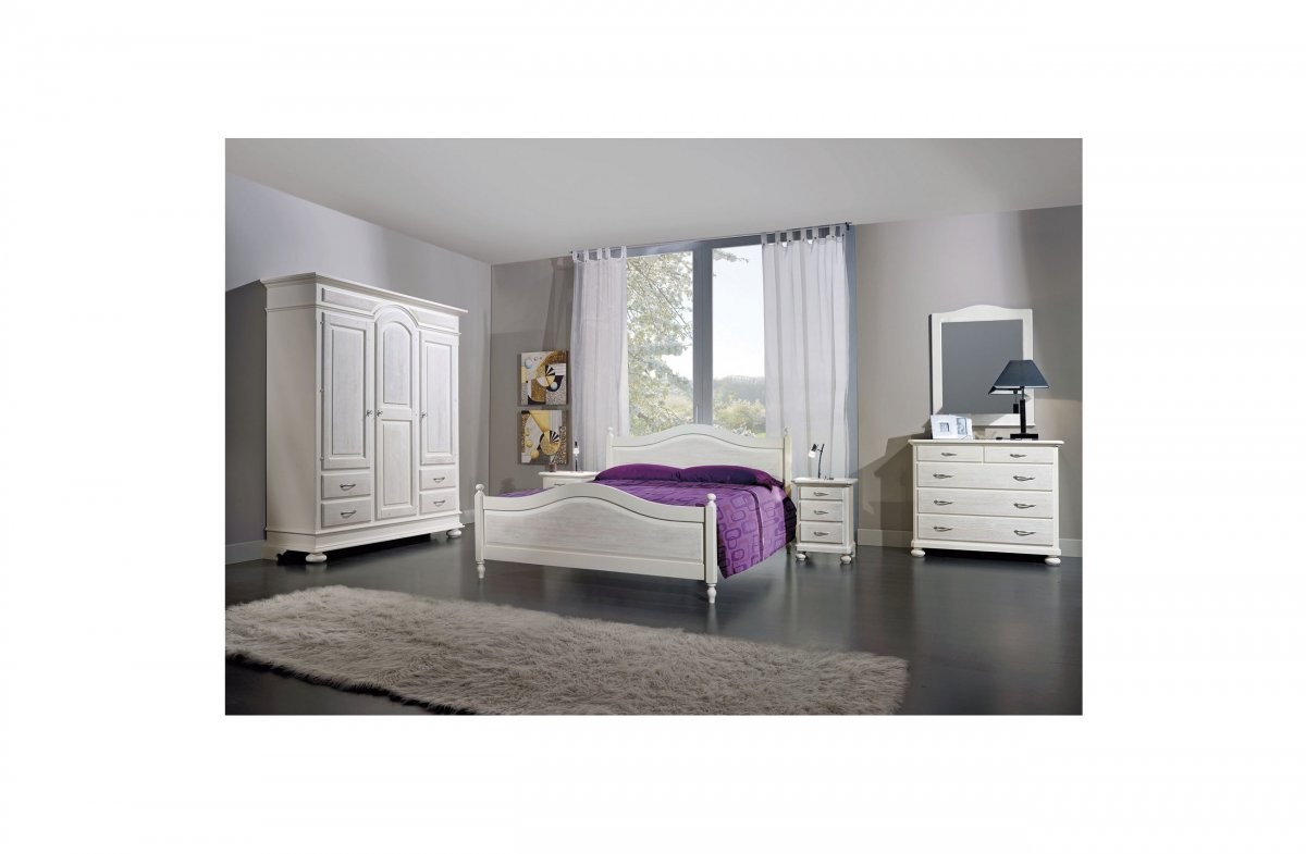 Camera da letto completa legno shabby chic bianco opaco/bianco invecchiato