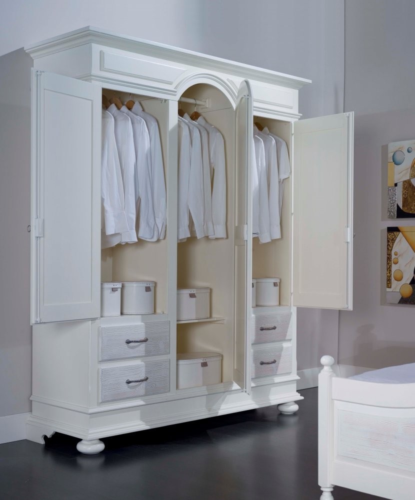- 1 armadio classico a 3 ante battenti con specchi centrali a diamante e 4 cassetti.