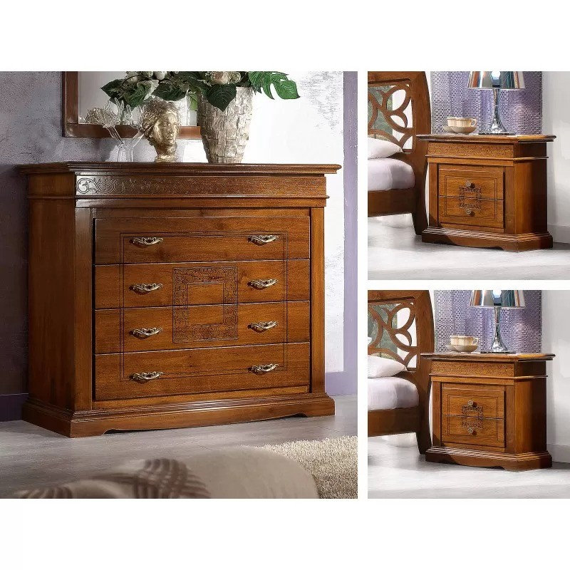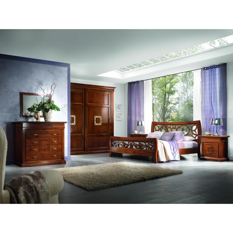 Camera completa classica legno intagliata tinta noce bassano