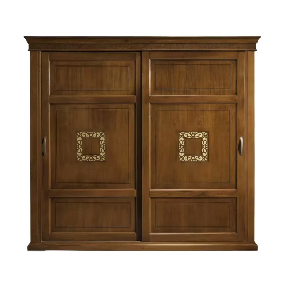 Realizzata in Italia in legno massello di toulipier con parti in listellare e tanganica, questa composizione con verniciatura noce bassano incarna l’essenza e la solidità dell’arredamento classico artigianale.