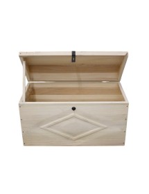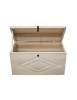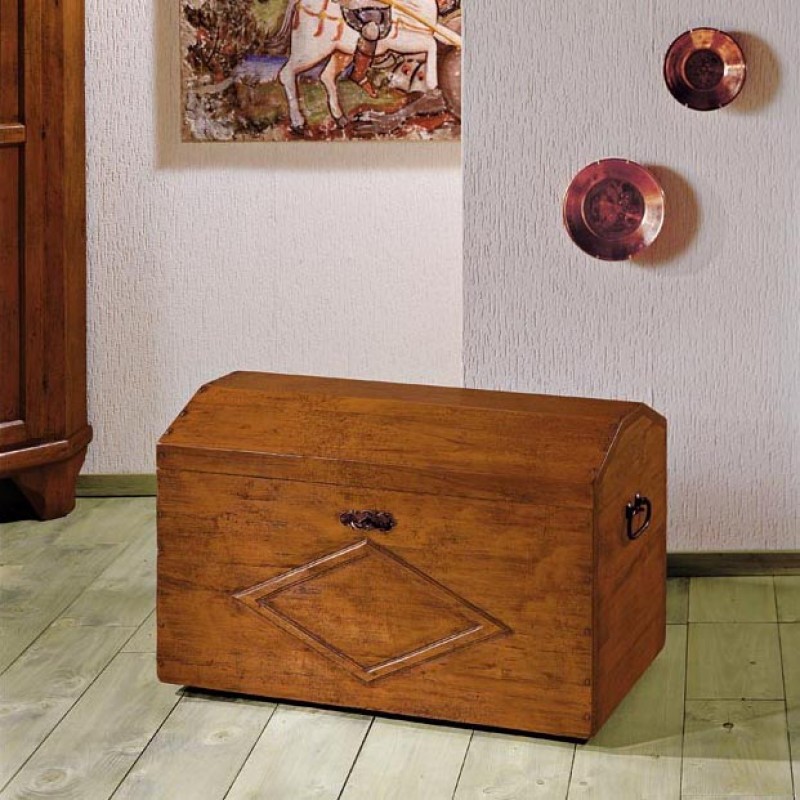 Baule dallo stile rustico con rombo intagliato da mani di esperti artigiani in legno massello di pioppo! Questo mobile è perfetto per arredare il tuo soggiorno, la camera da letto o lo studio con stile e funzionalità come seduta o per il riordino di giocattoli , biancheria o altri oggetti.