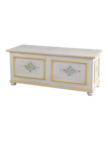 Cassapanca in legno shabby bianco anticato decoro filo giallo 116,5X40,5X46299,00 € 664,45 € -55%