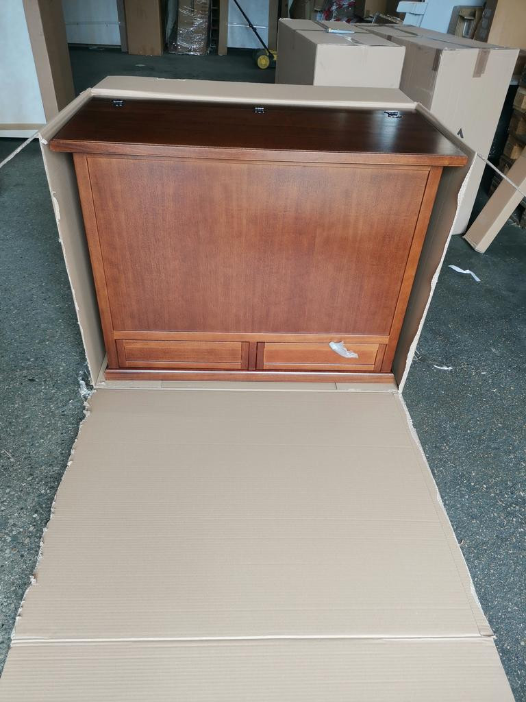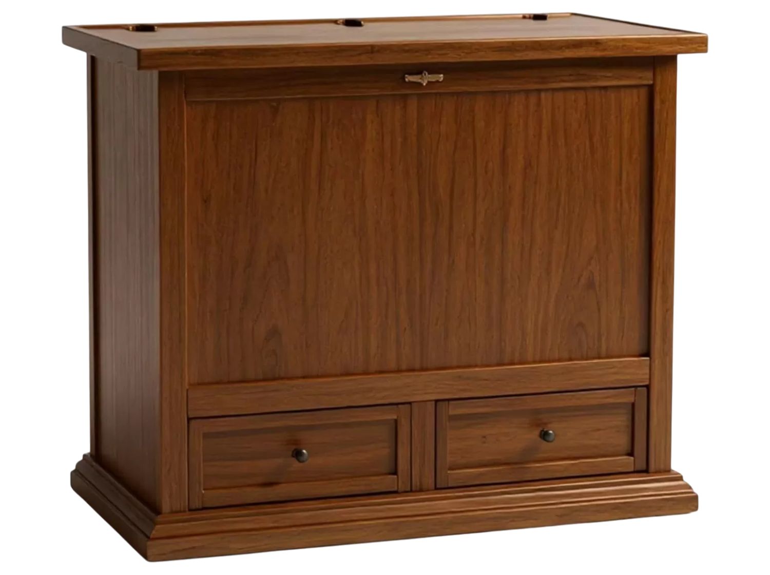 Baule 2 cassetti con ribalta in legno arte povera tinta noce 105x55X106