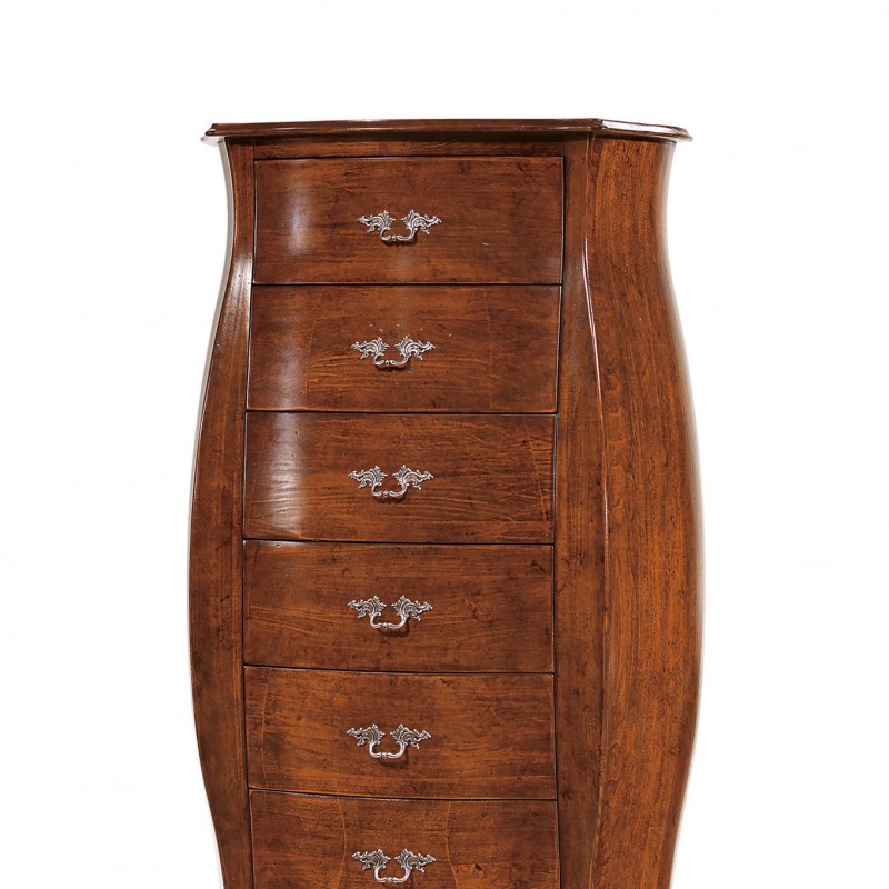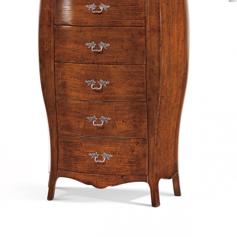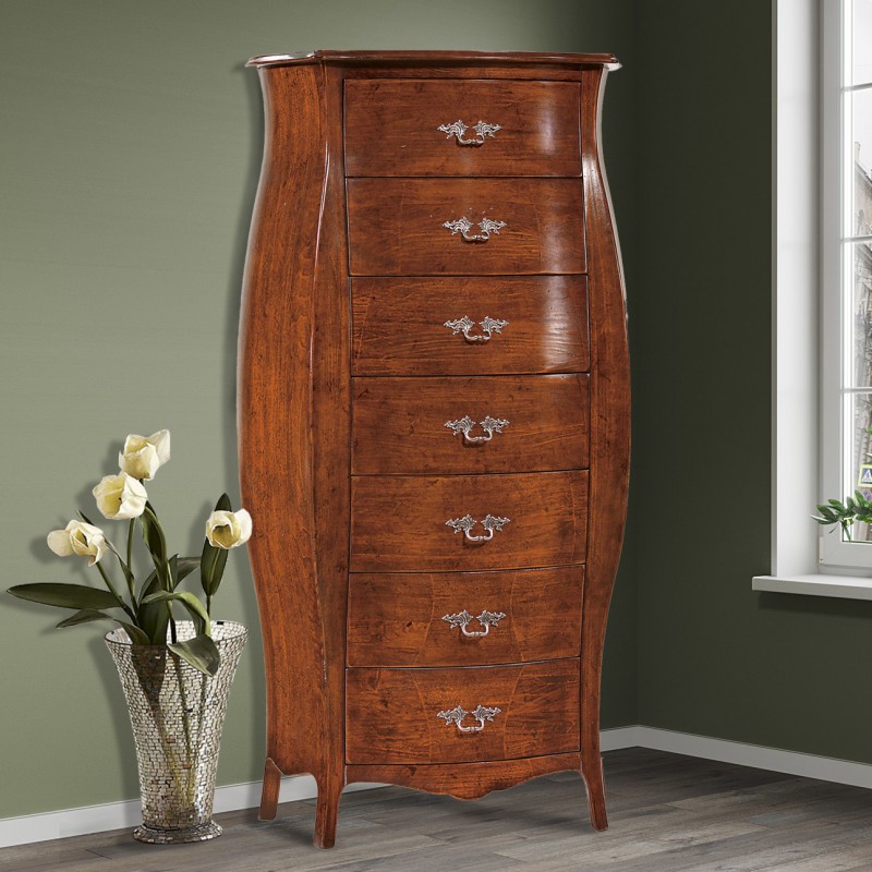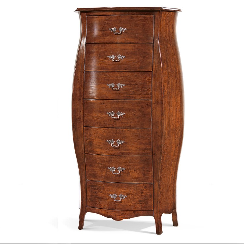 Cassettiera bombata 7 cassetti classica legno noce bassano 73x37x141 (2155)