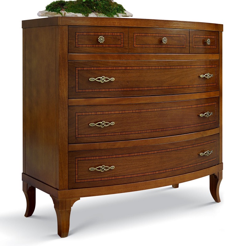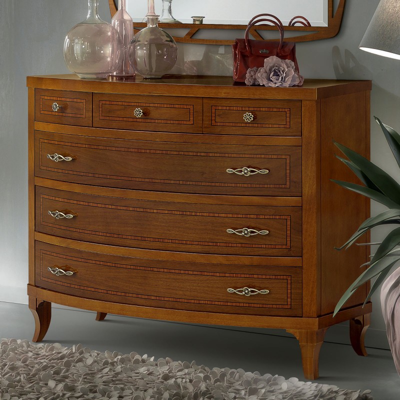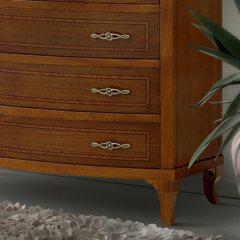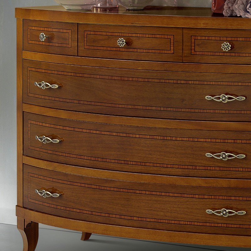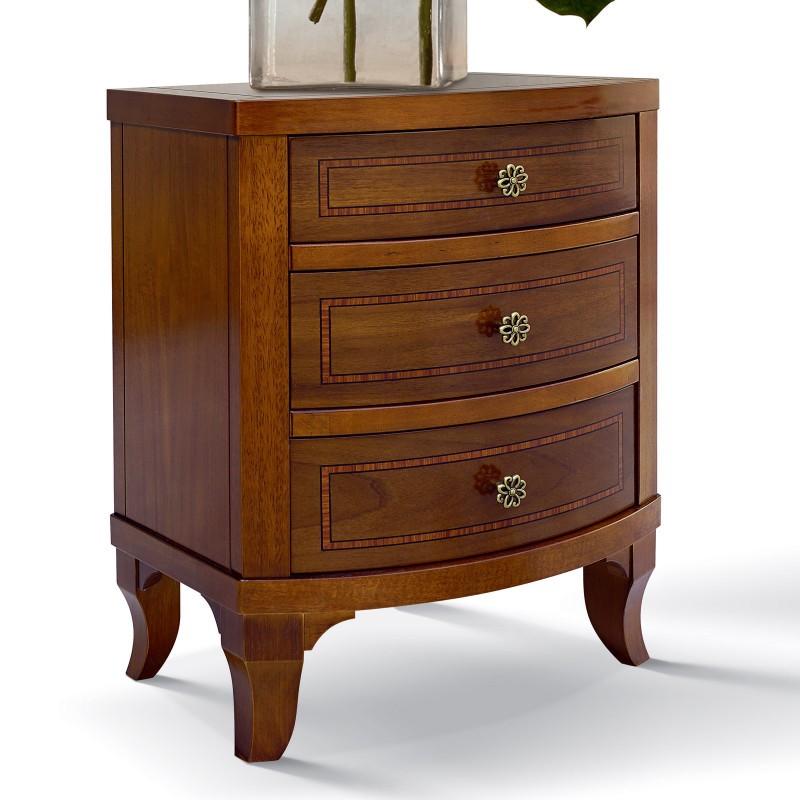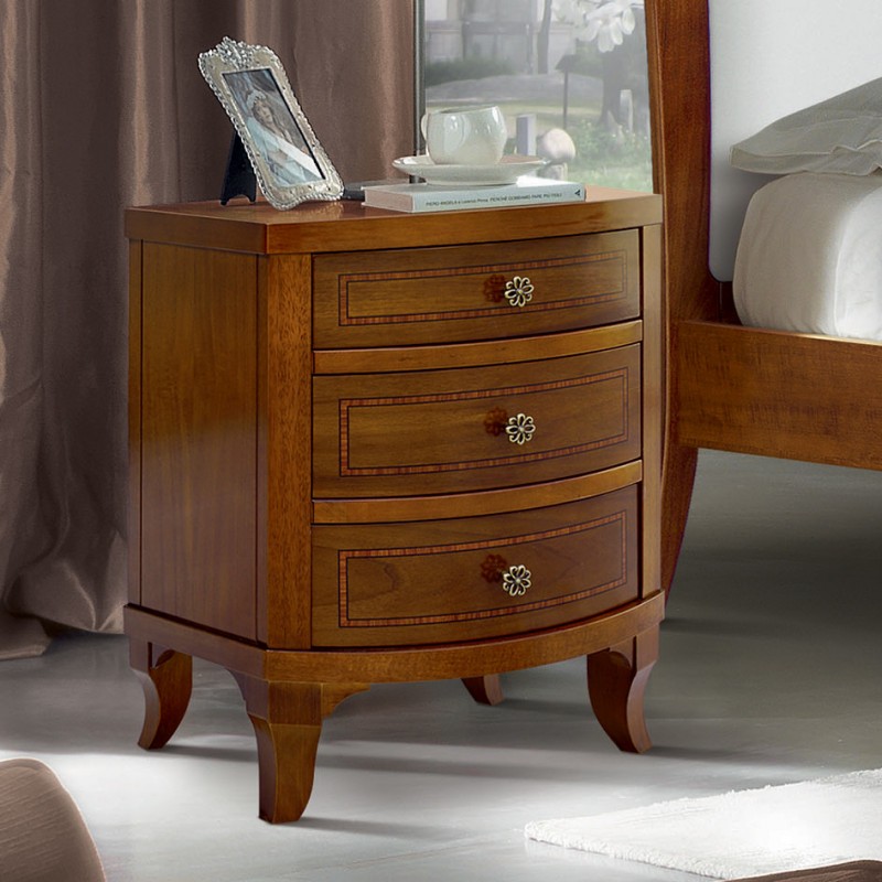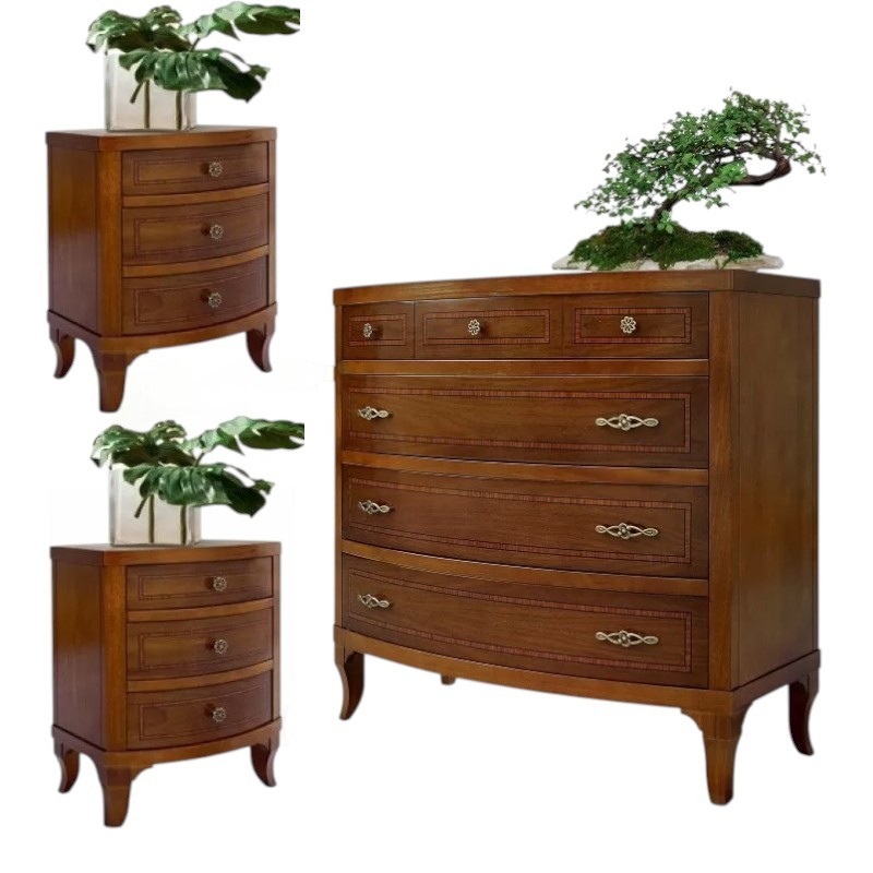 Gruppo 1 Cassettiera 2 Comodini legno classico sagomati noce bassano